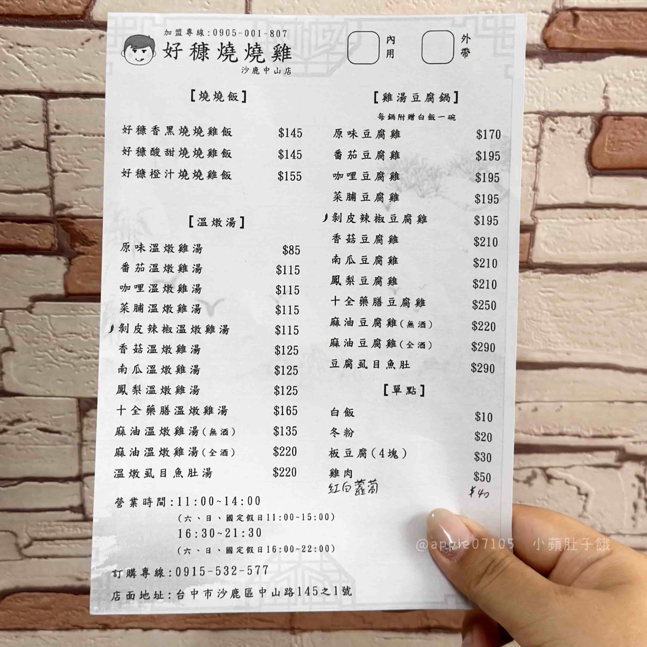 好穅燒燒雞菜單價位