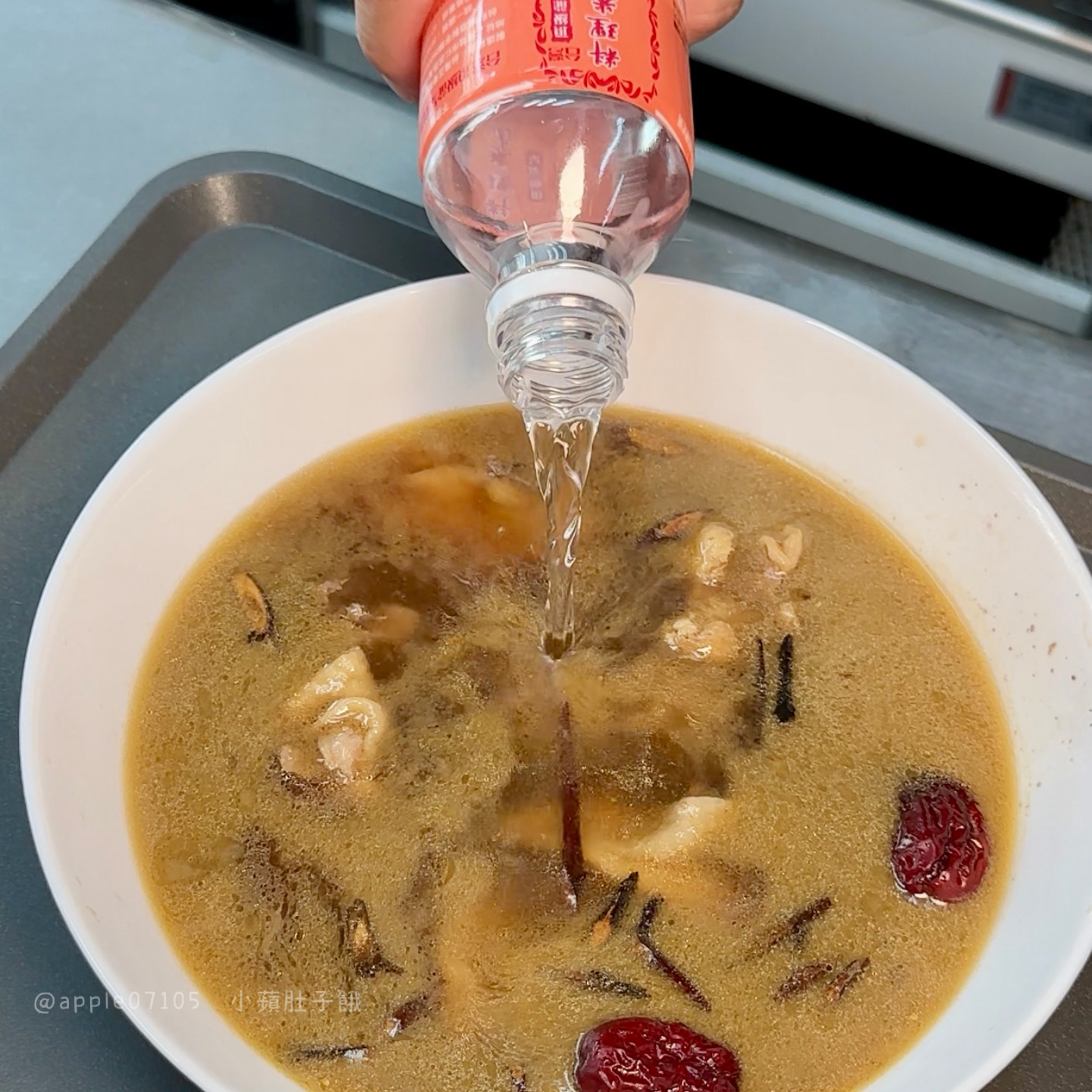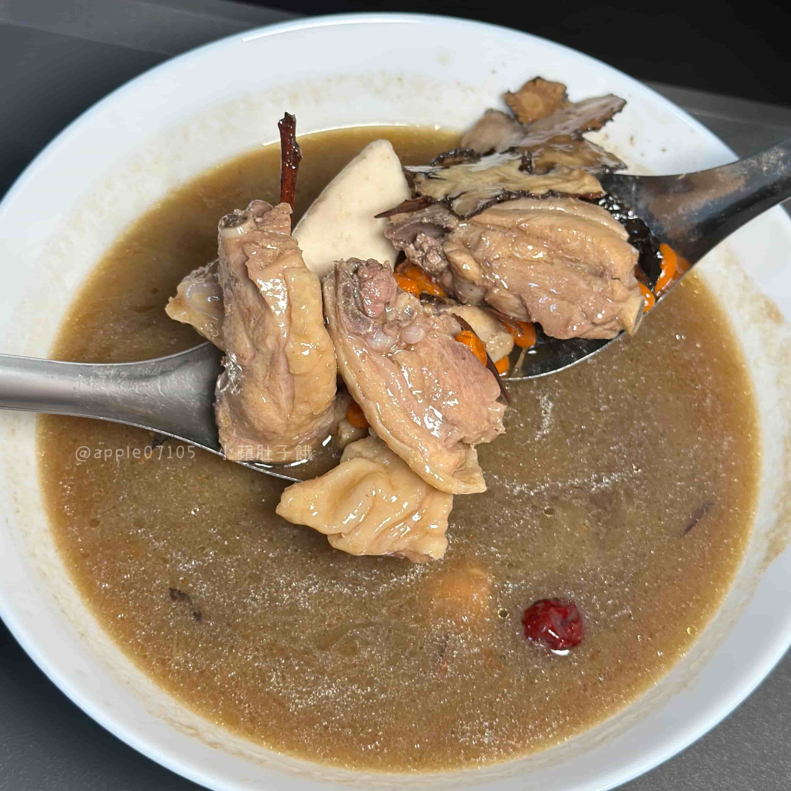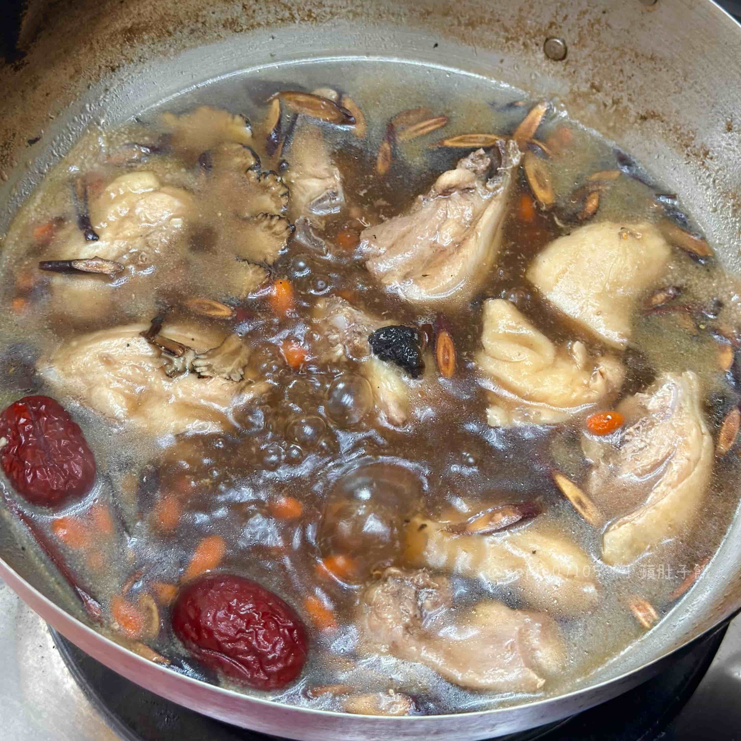 麻油半酒十全大補雞湯放了多種中藥材,邊煮藥材香氣就一直飄過來很香~