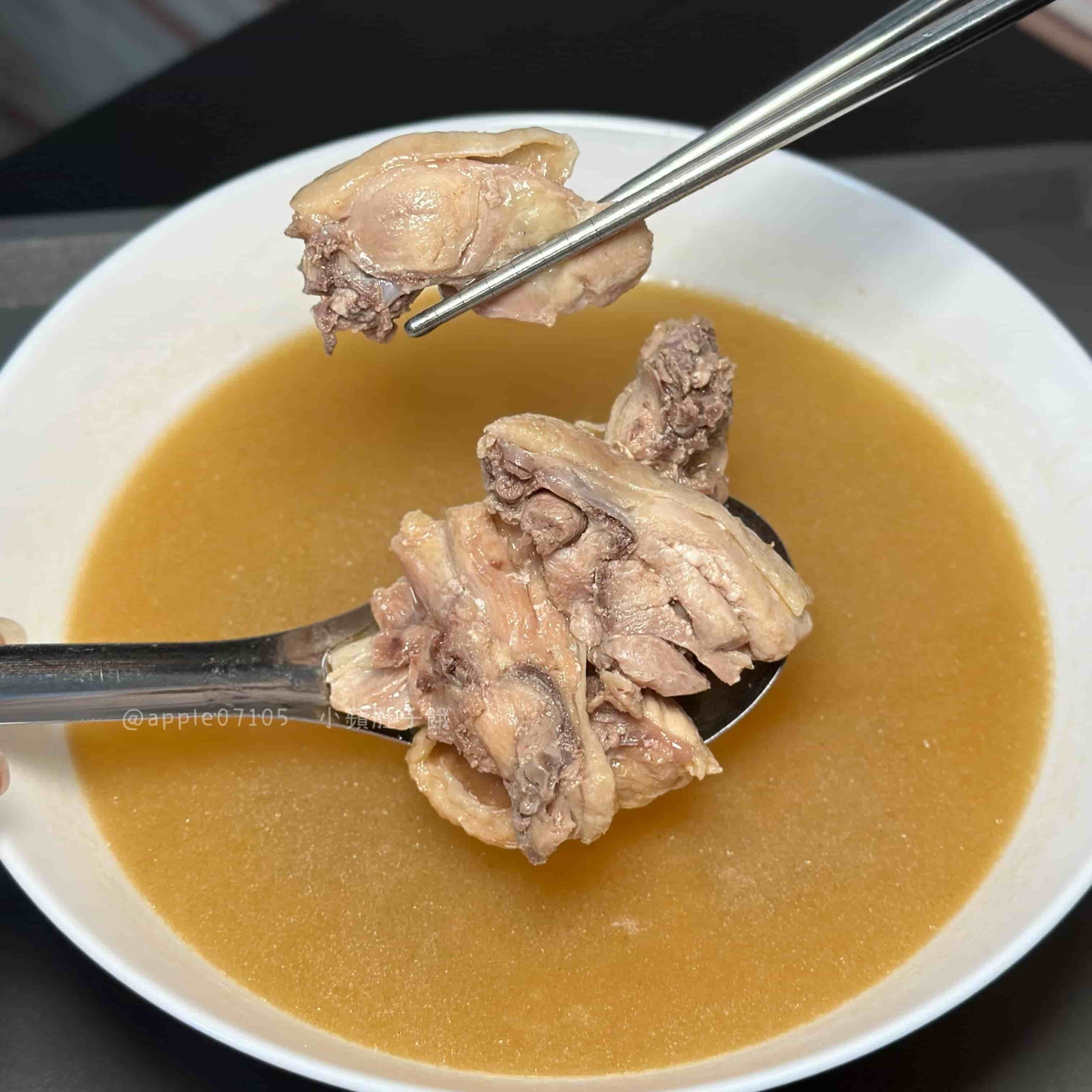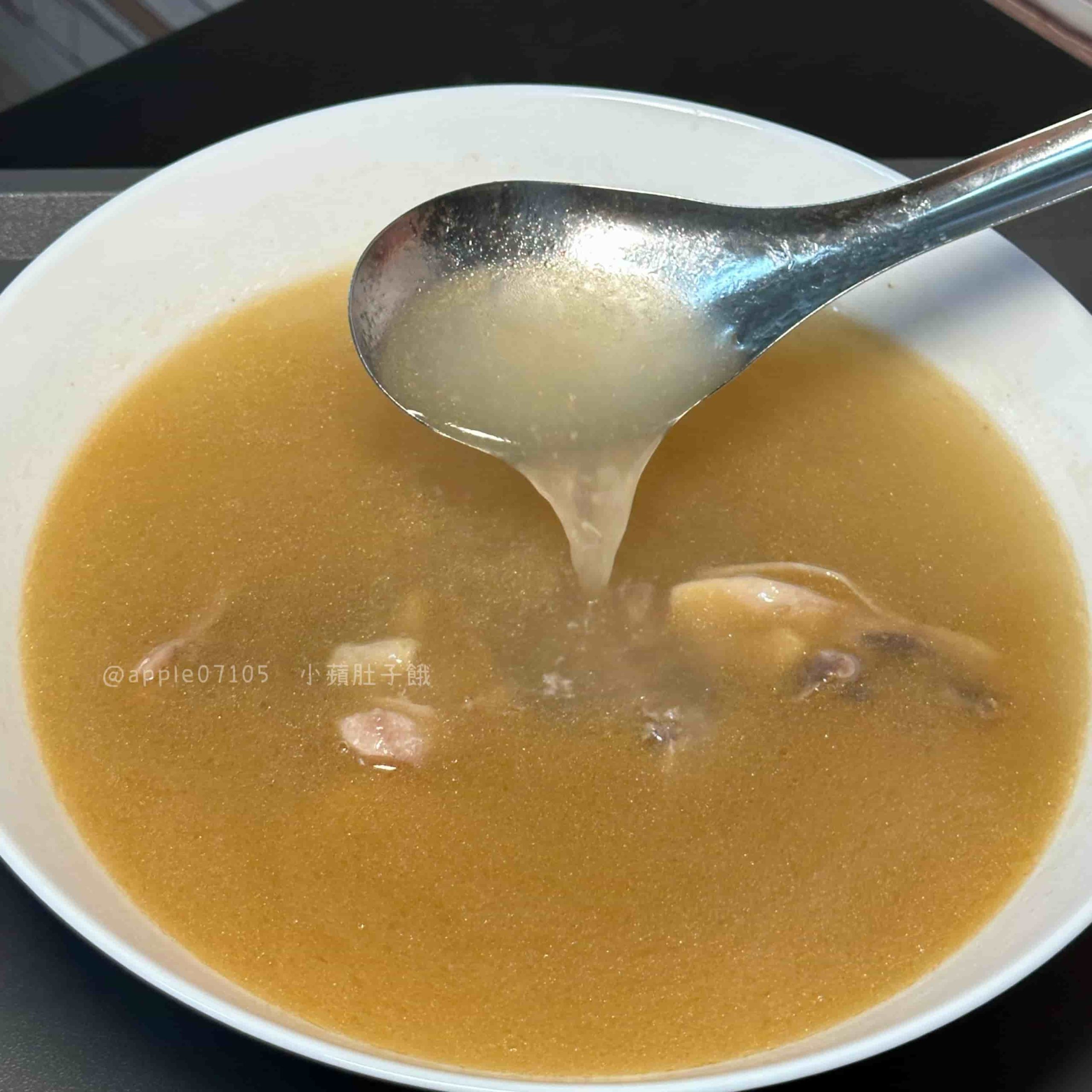 湯頭喝起來是雞湯香中帶淡淡自然的鳳梨果香,不油膩很順口