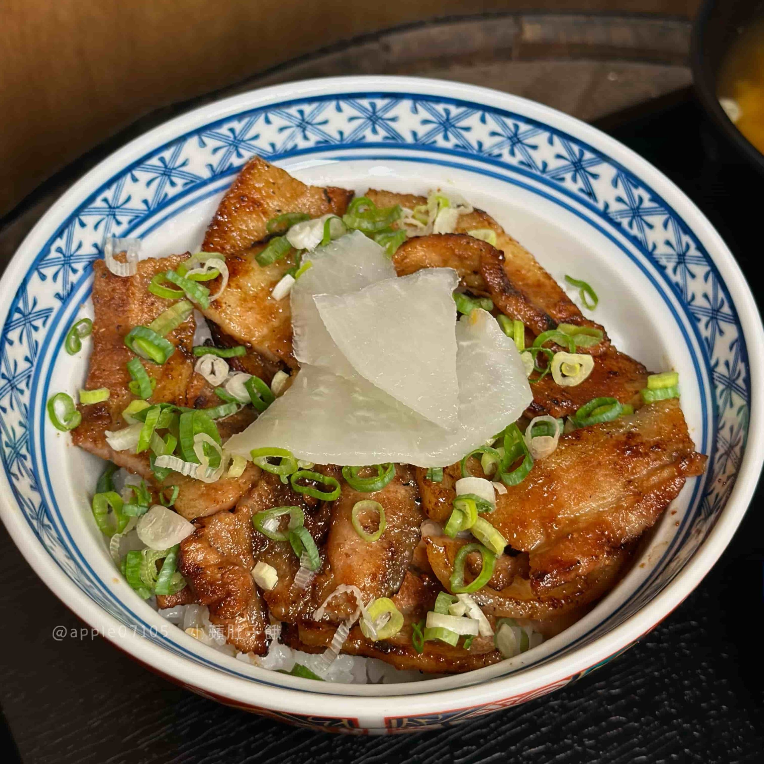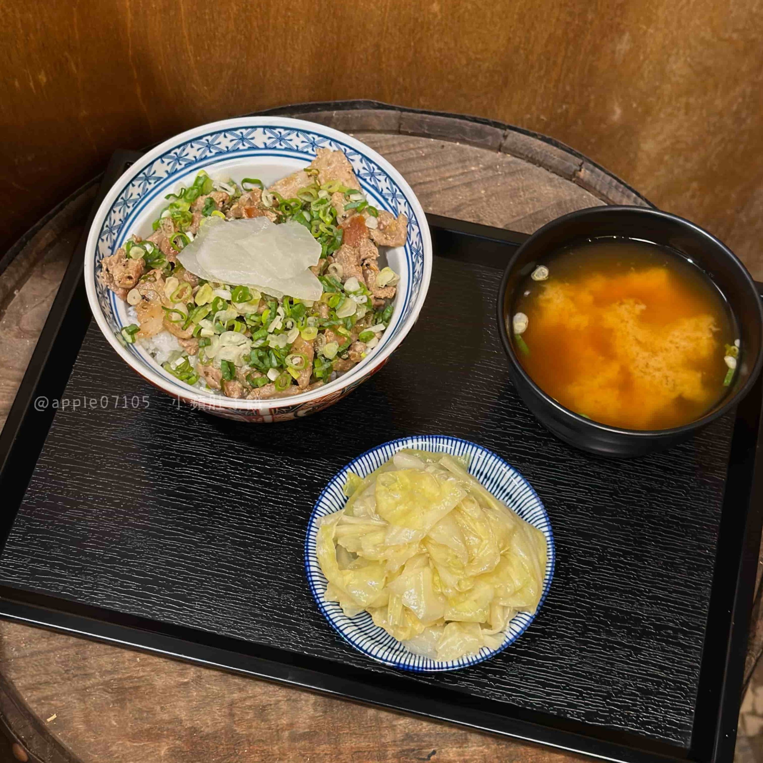 蔥塩燒肉丼,套餐附高麗菜+味噌湯