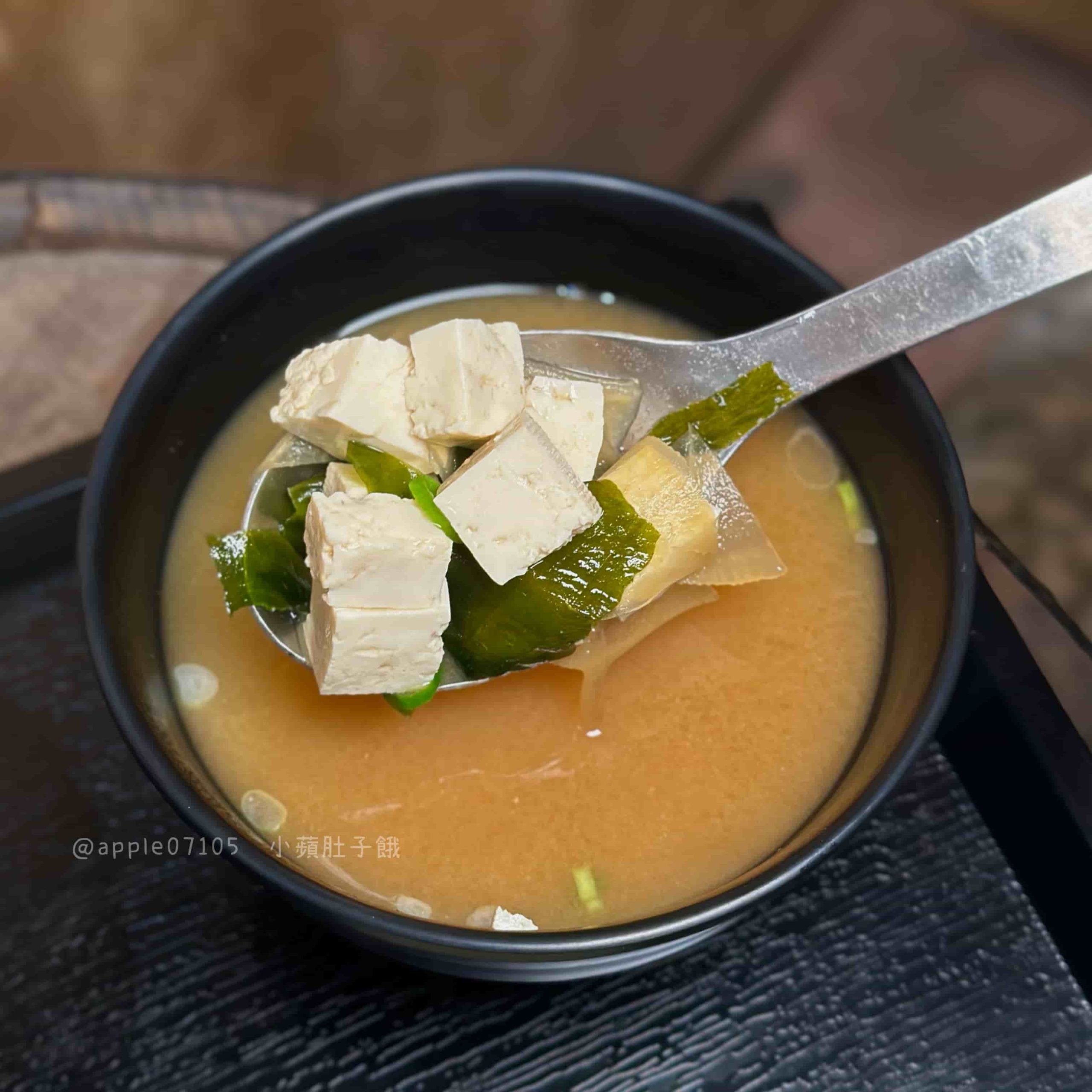 味噌湯,湯頭濃郁順口,喝得出來是師傅用心熬煮的味道,帶著味噌的香醇與甘甜,裡面有豆腐、海帶跟洋蔥等配料,熱熱喝暖胃剛好