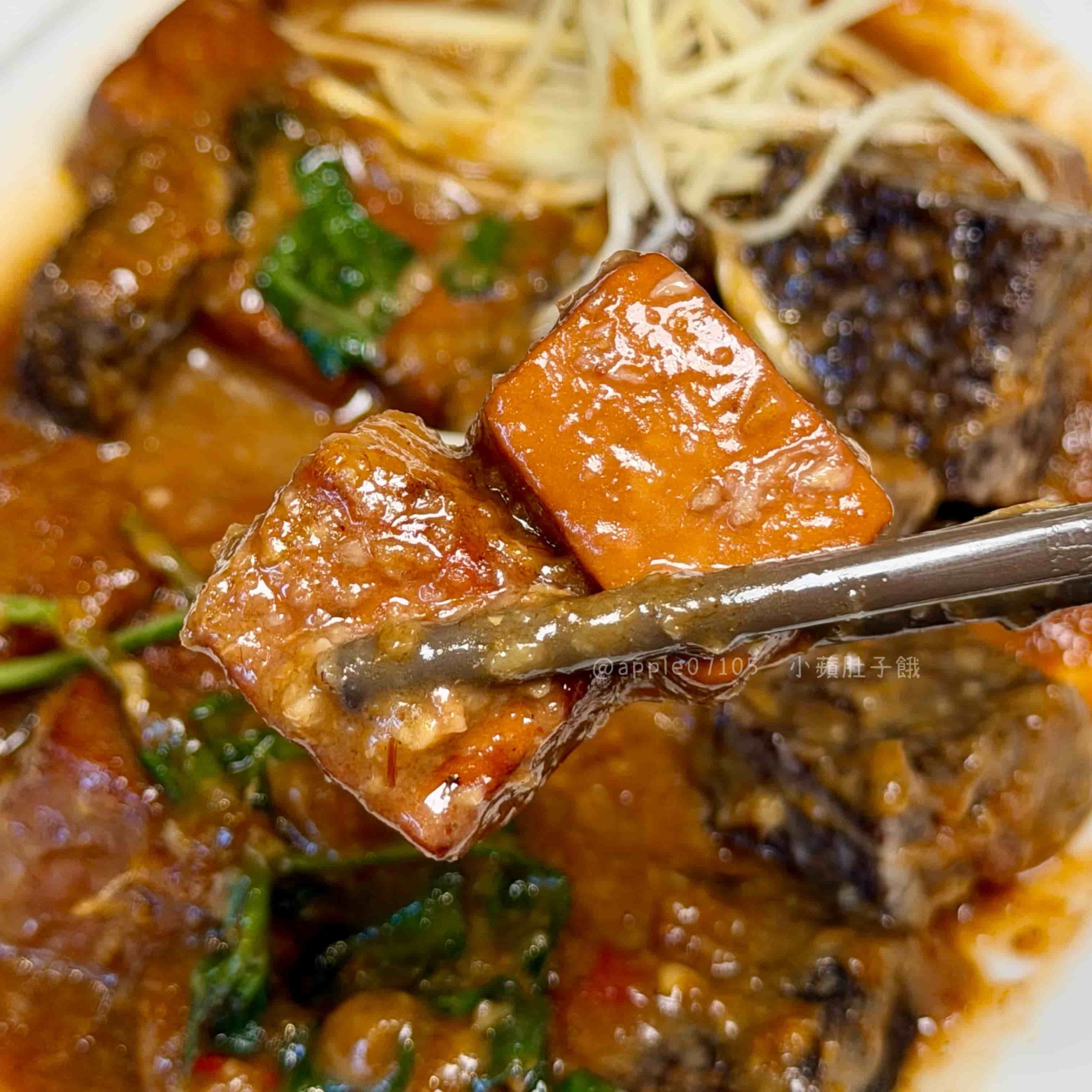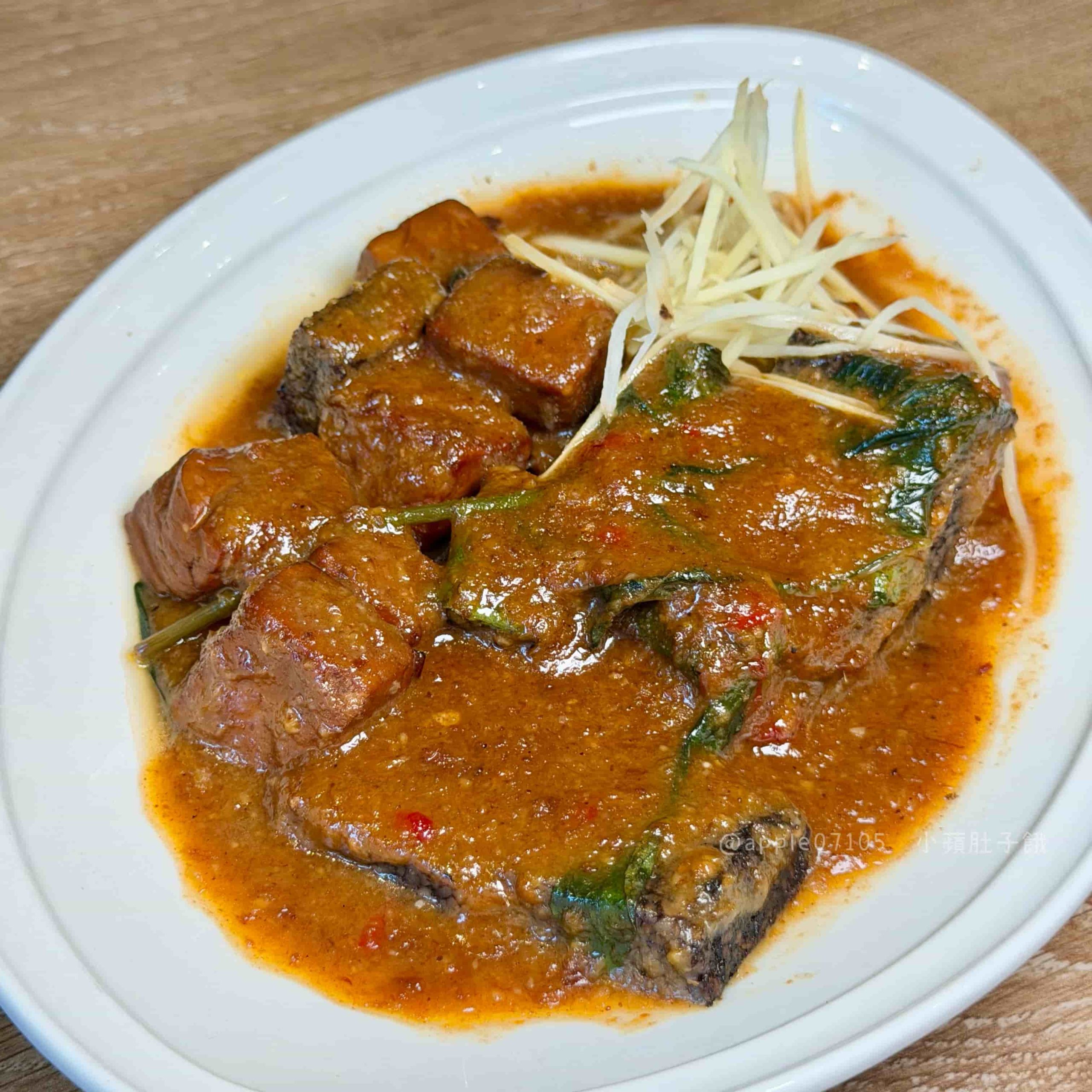 米血Q彈、豆干偏軟口感,米血跟豆乾本身味道都不會太重,所以一定要搭醬才會更香~醬是偏沙茶、沙嗲的那種風味,帶明顯薑味、蒜味,香氣很足,鹹甜中帶一點微辣