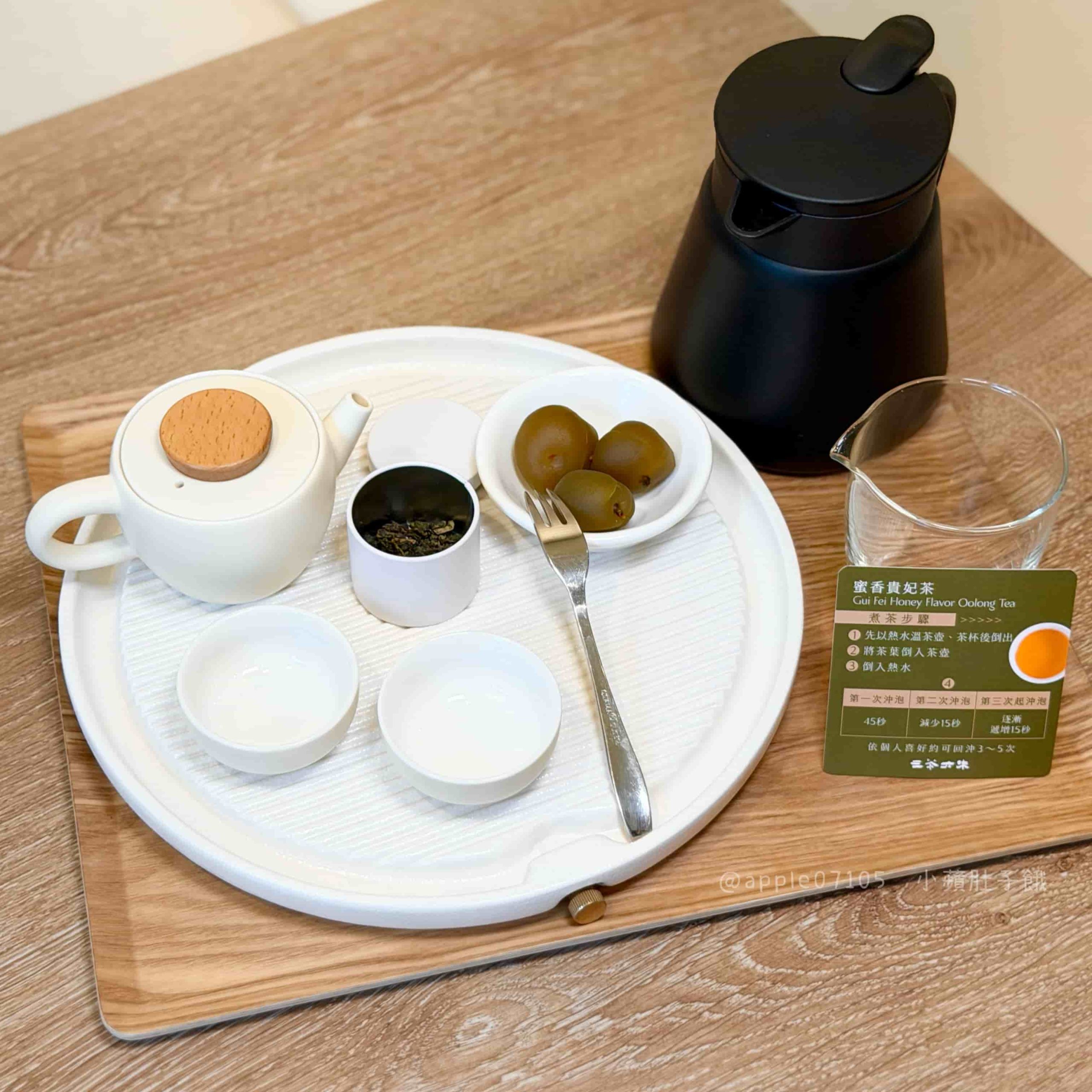 自己泡的熱茶組!附上茶具跟小教學卡,照著時間沖自己就可以簡單泡出好茶