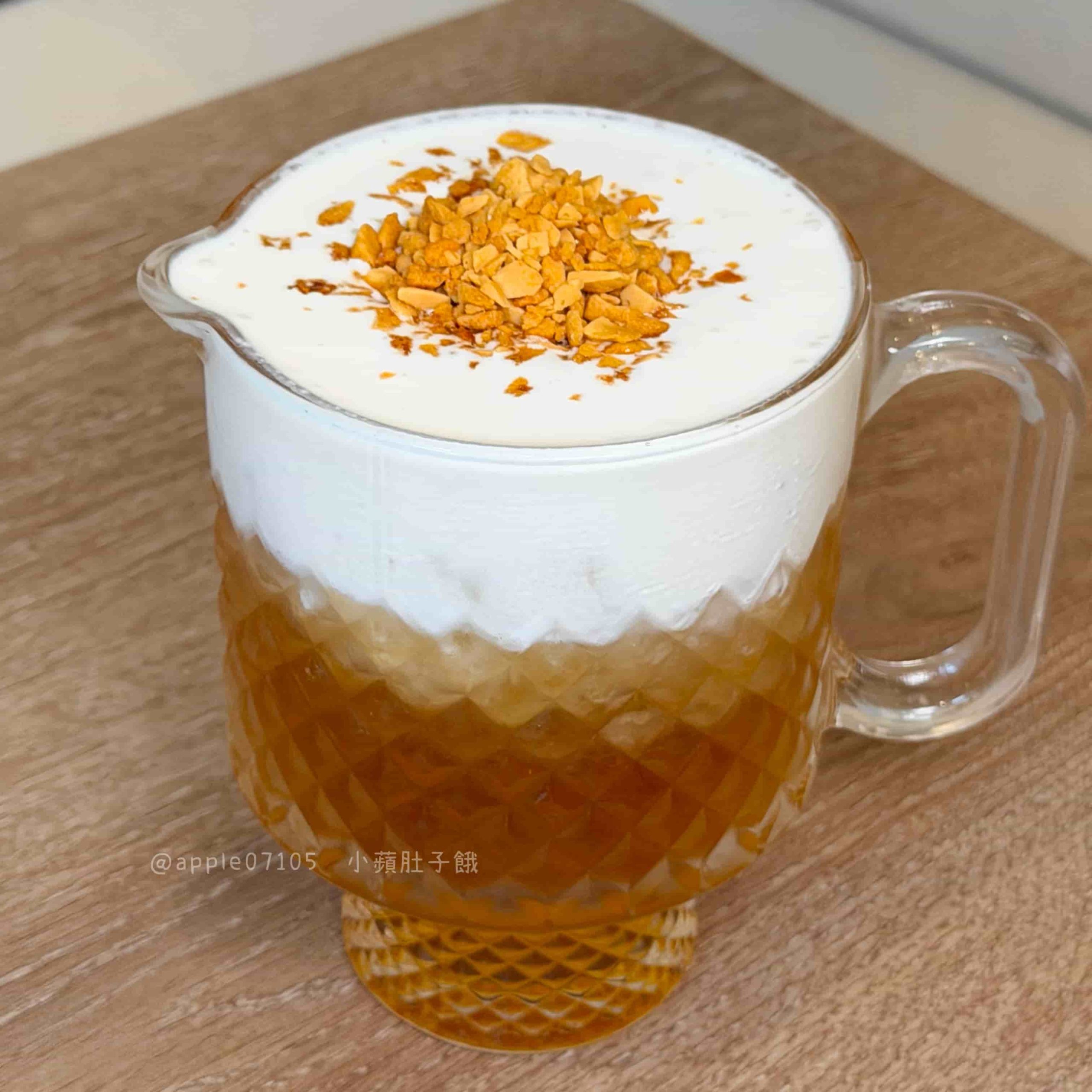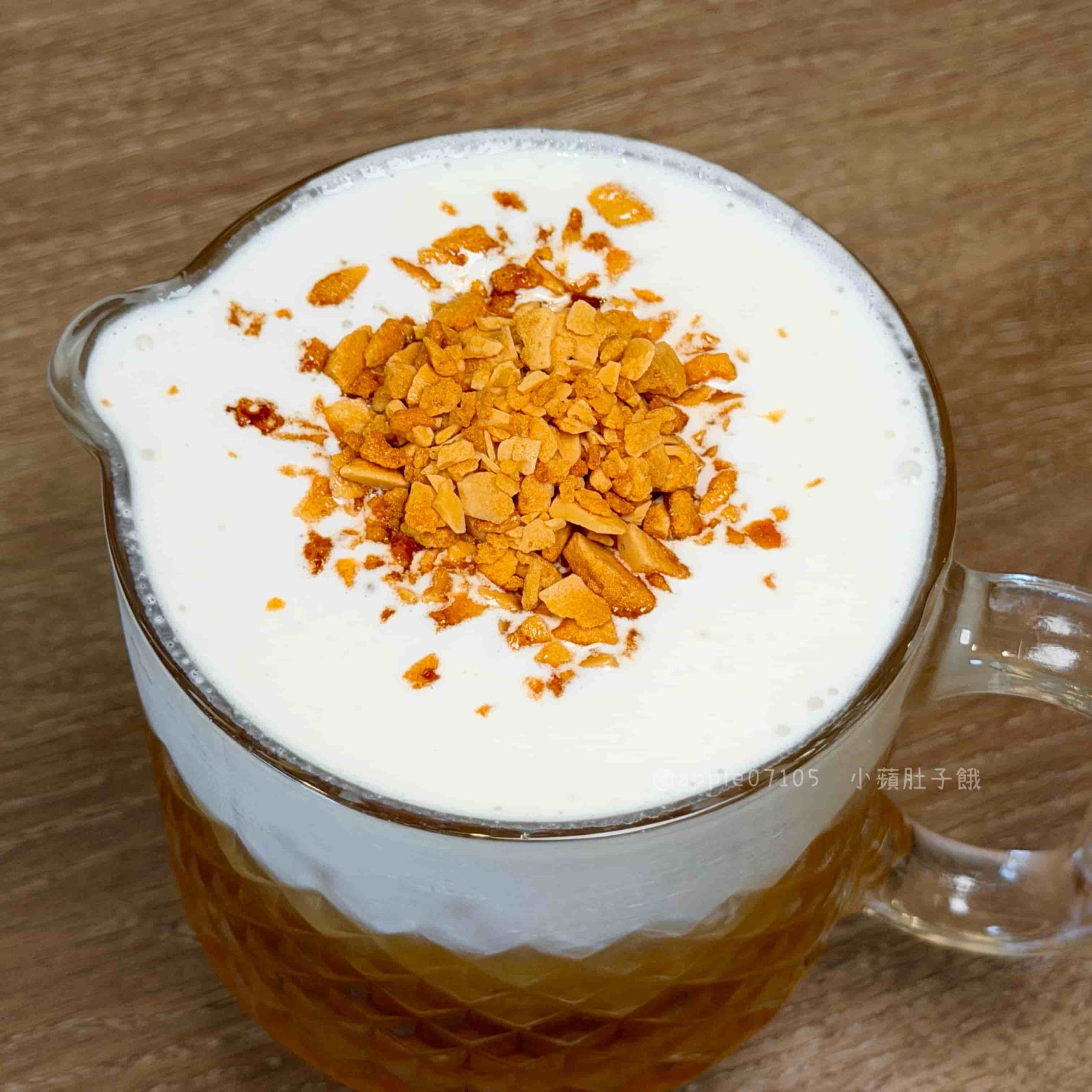 奶蓋很綿密,微鹹帶奶香,有點像融化的香草冰淇淋那種滑順感~上面撒的卡美羅焦糖脆片很加分!焦糖香甜又脆脆的,讓口感更有層次,搭配底下的茉香綠茶,茶味清爽帶淡淡花草香,不會苦澀
