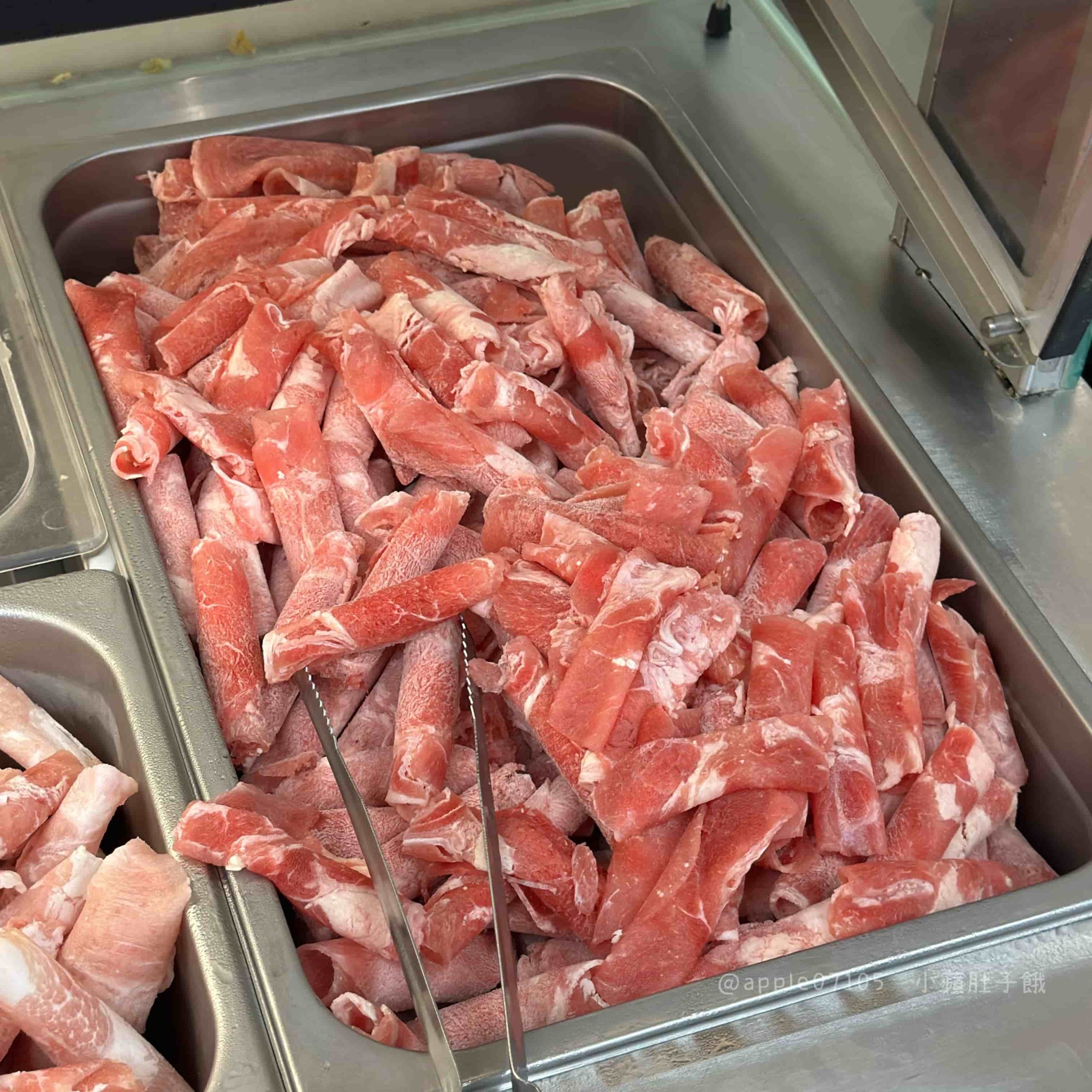 蒙古烤肉區的肉品相當齊全,光是肉就有羊肉、牛肉、豬肉、豬五花、雞肉五種選擇,每一種都切成薄片,方便快速拌炒~愛吃羊肉的可以豪邁夾一大盤,想吃肥瘦相間的就選豬五花,牛肉炒起來香氣更濃郁,雞肉則是清爽耐吃,搭配自選蔬菜和醬料,怎麼配都不會膩,完全能吃出自己專屬的蒙古烤肉風味