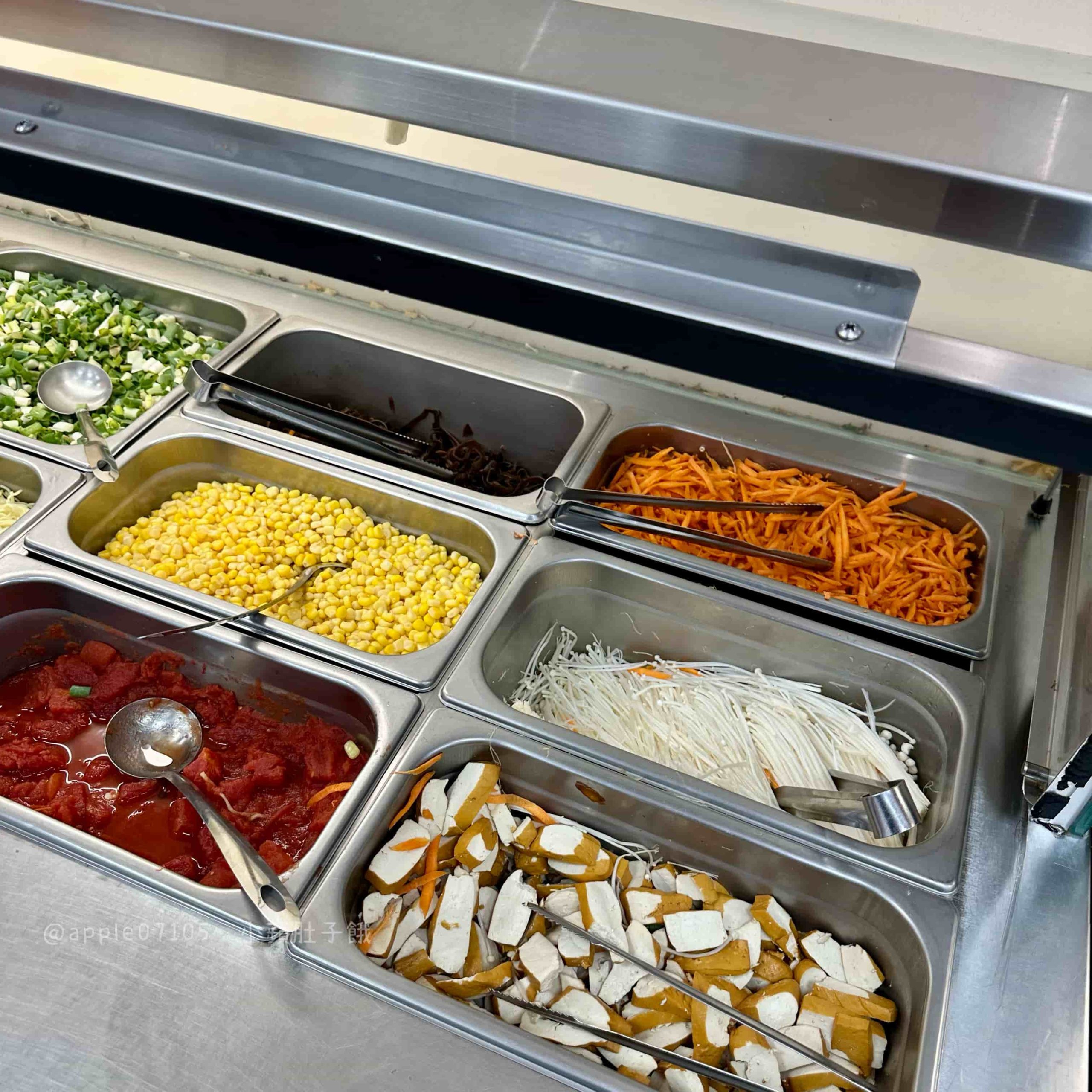 除了肉品選擇多,自助區還準備了 13 種蔬菜與配料,不論想要清爽或豐盛都能自己搭,食材都以當天提供的為主