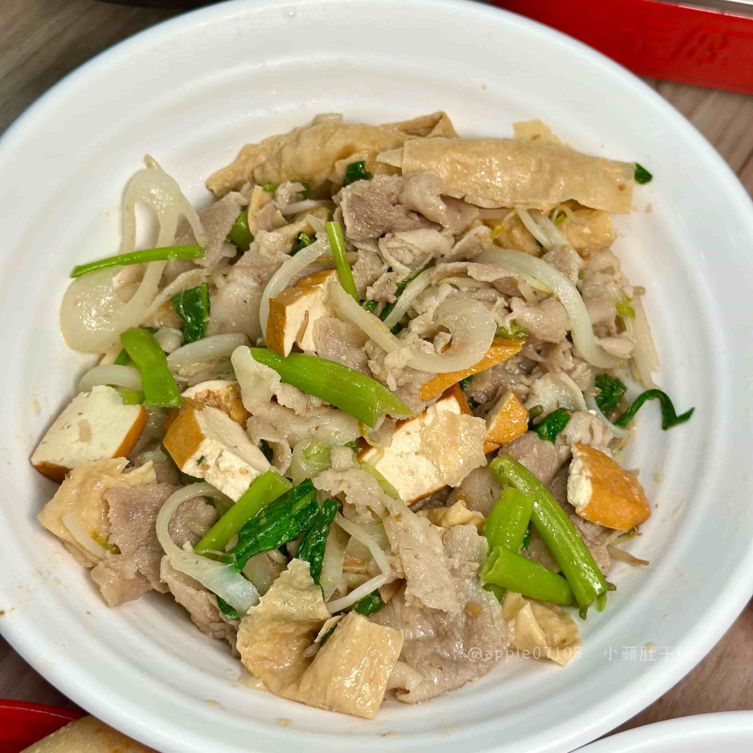 另一碗搭配豆皮、蔬菜,吃起來清爽不膩口