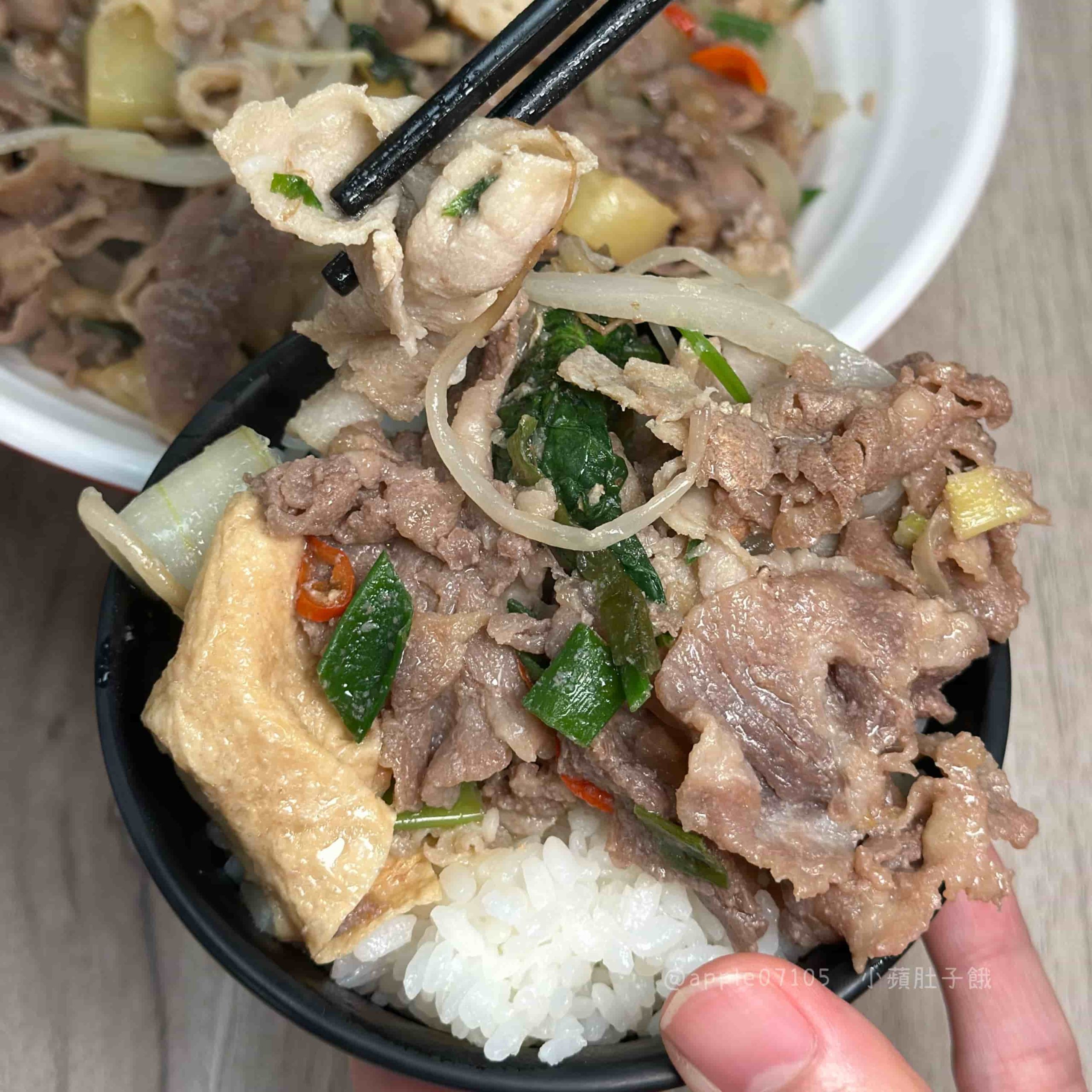炙肉高手的蒙古烤肉是以鐵板快炒的形式,跟傳統蒙古烤肉不太一樣但也是非常香!師傅的手法俐落,快速翻炒讓肉片均勻入味,幾分鐘後就能端上一碗熱騰騰的蒙古烤肉