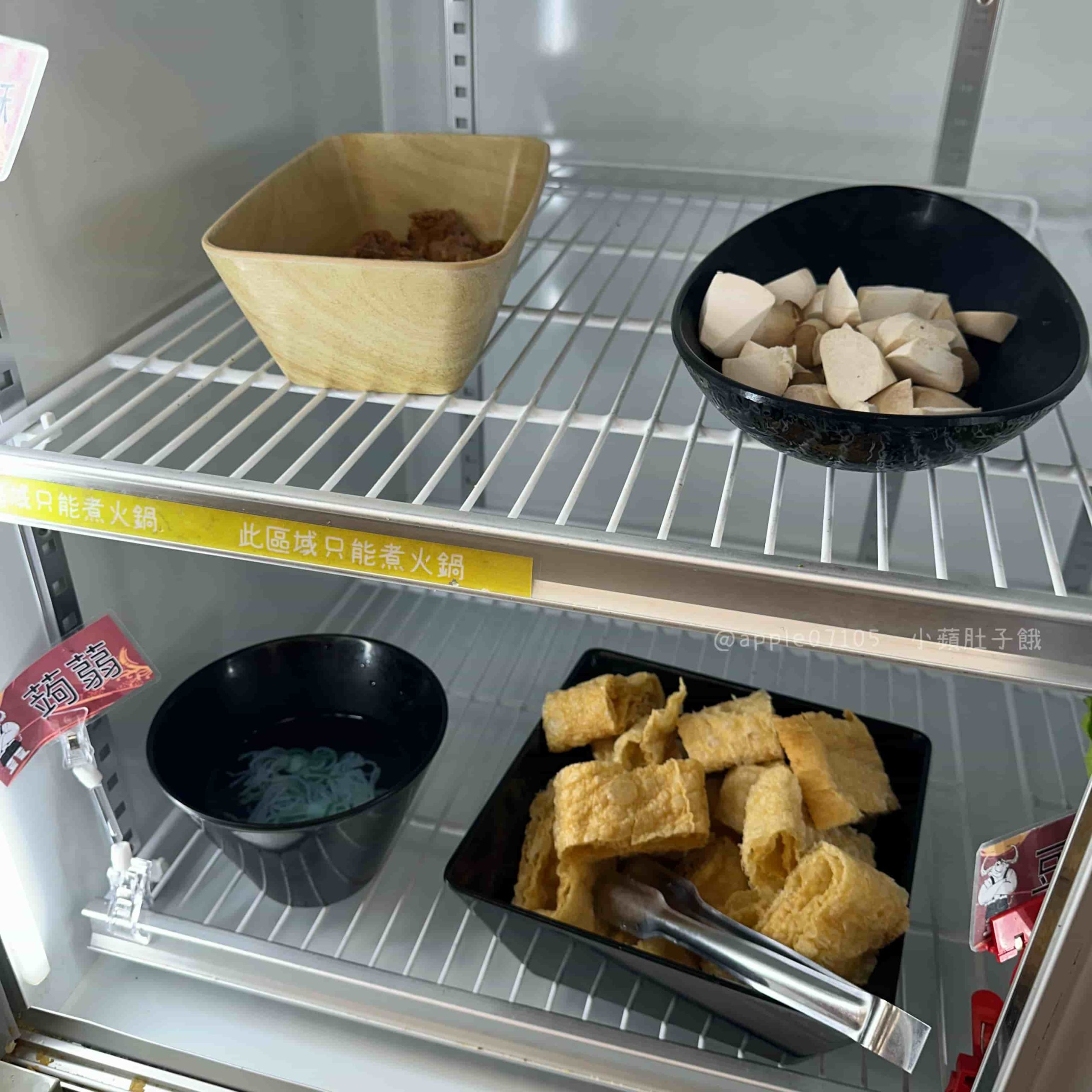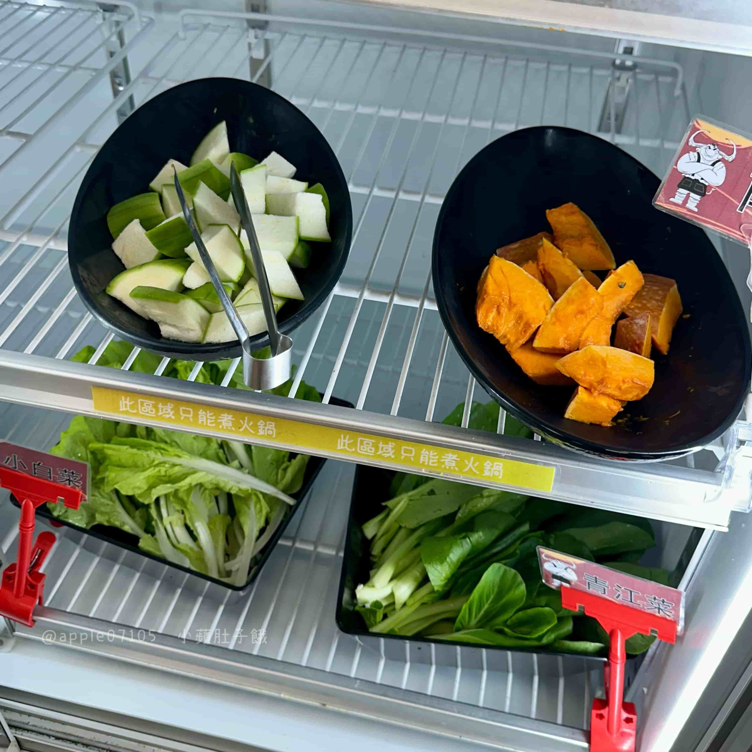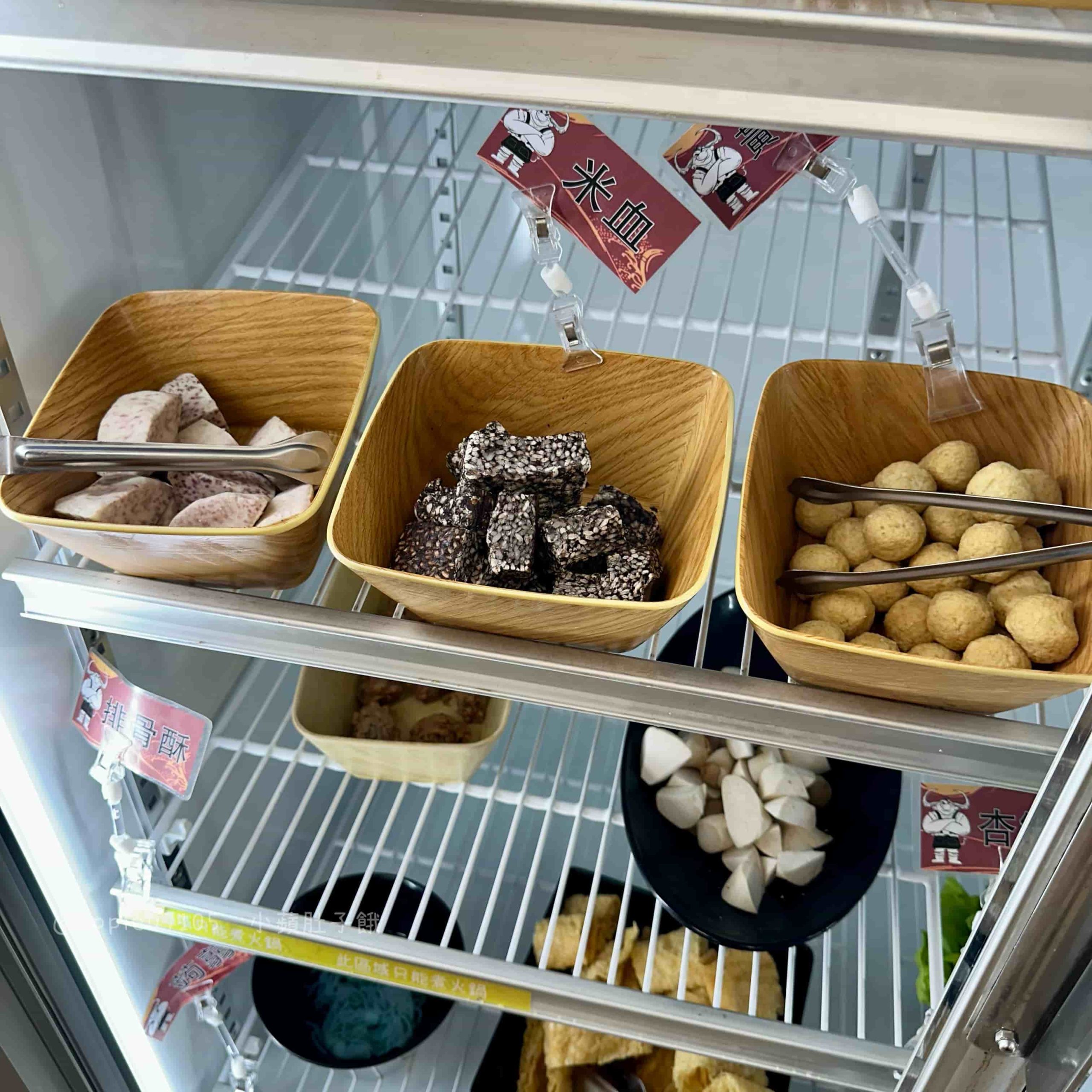 如果有加點火鍋,還有專屬的火鍋料冰櫃(沒有加火鍋就不能夾取這邊的食材唷!)各式食材想吃多少都能自由取用,蔬菜、火鍋料等等將近20種