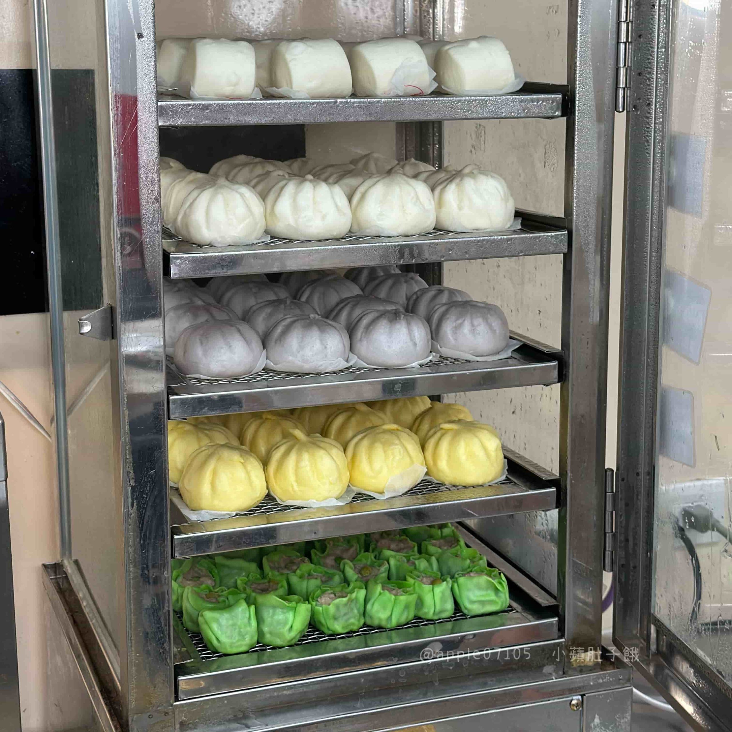 蒸籠點心區,提供多種中式小點,饅頭、芋泥包、奶皇包與燒賣