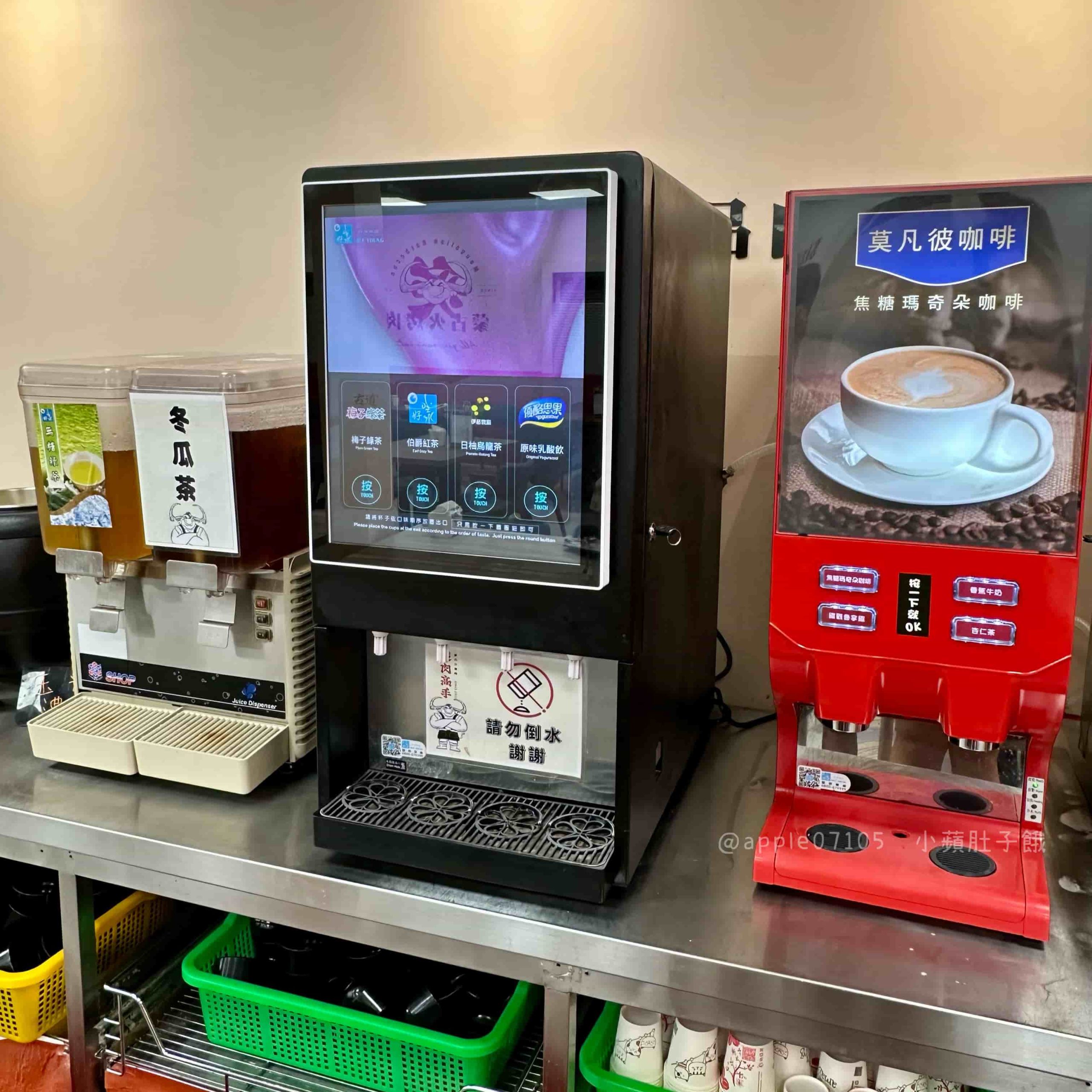 飲料吧選項也很齊全,有冰涼冬瓜茶、無糖綠茶、果茶跟咖啡機台,用餐時想喝清爽系或濃郁系都能滿足