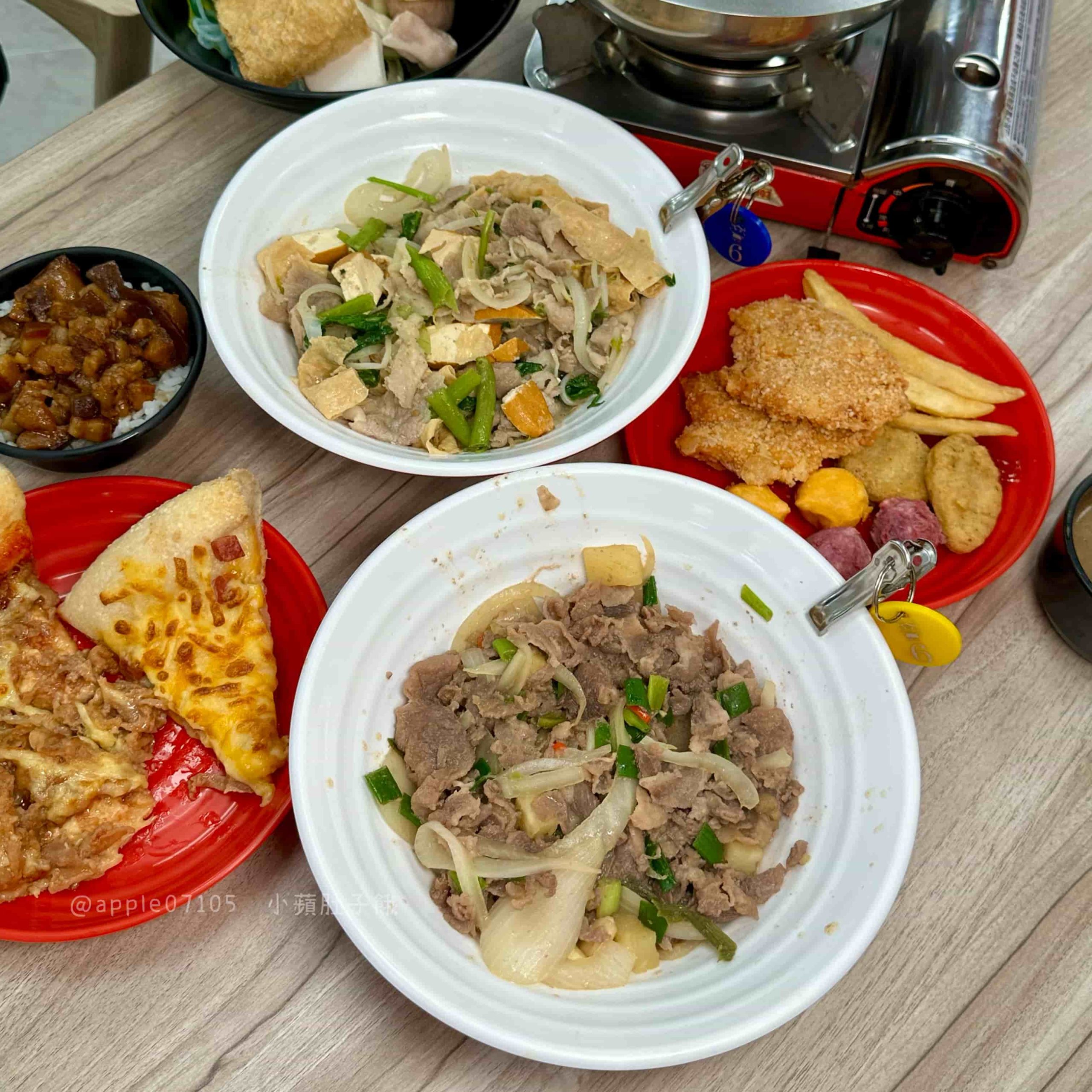 我個人推薦選豬肉片搭配九層塔、洋蔥、蔥花,再加上蒜泥+沙茶調味,炒出來的肉片香氣濃厚,帶著洋蔥的脆甜口感,鹹香重口味,配白飯真的一口接一口停不下來