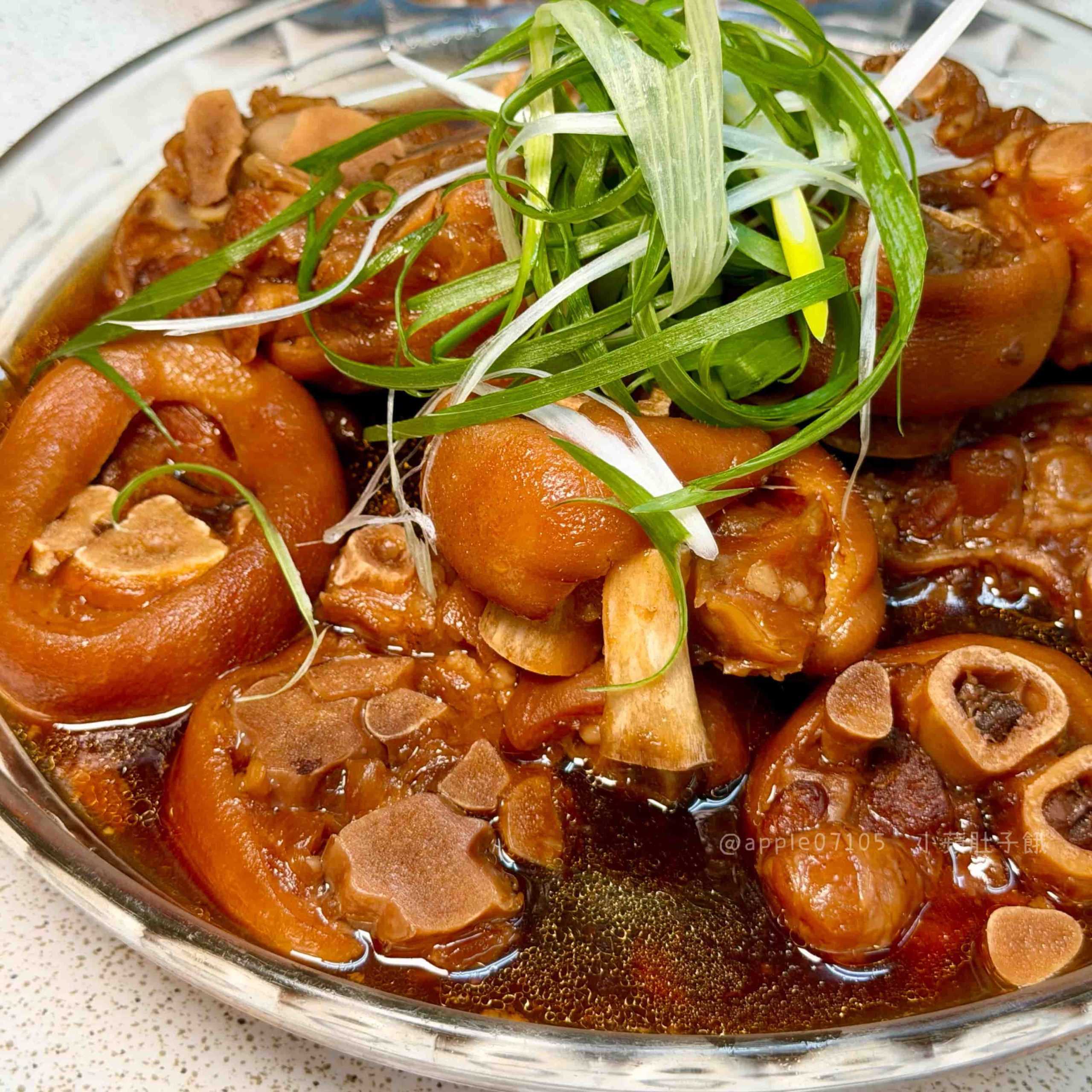 豬腳口感偏Q彈,不是一咬就散的那種,膠質感很明顯,但不會過於油膩,吃起來是鹹香、入味,滷汁有完整吃進豬腳裡