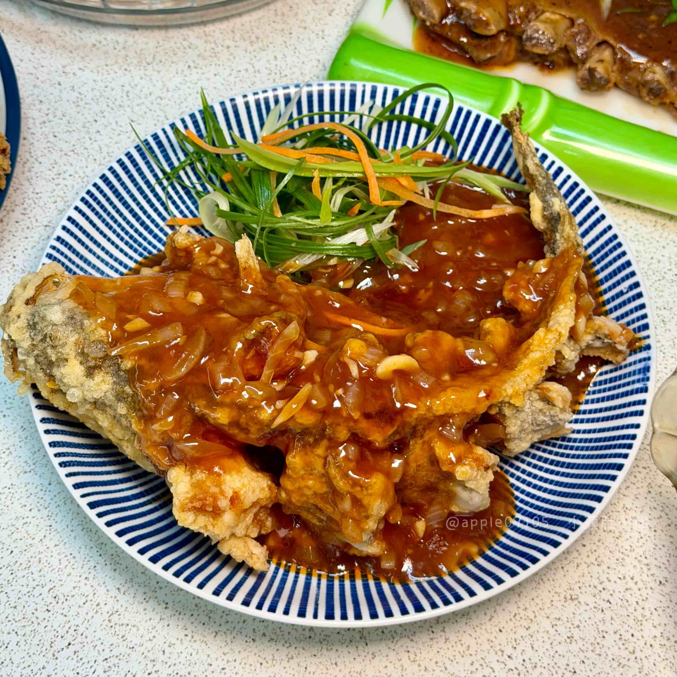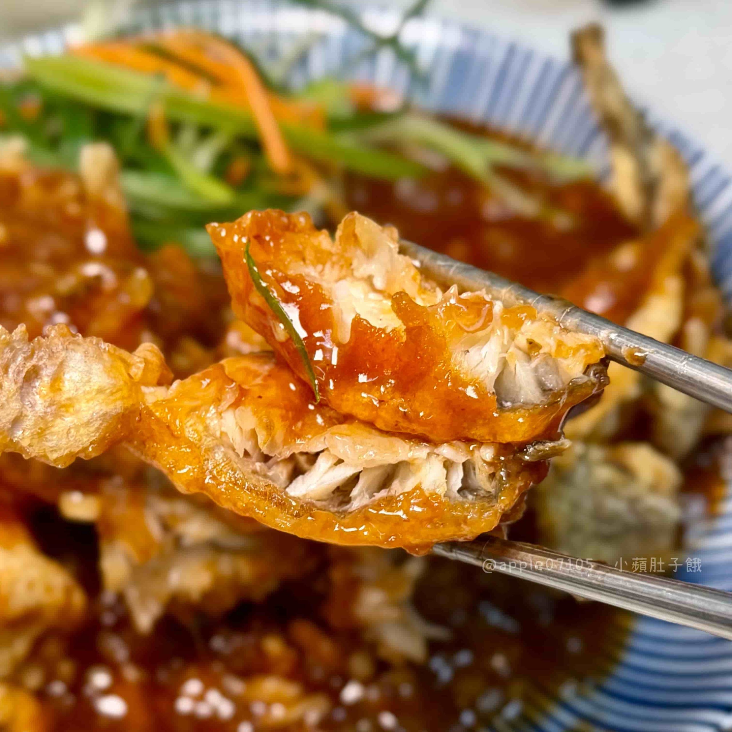 糖醋黃魚炸得非常乾爽扎實,一口咬下去真的很酥~~即使有裹上醬汁,外層還是能吃到明顯的酥脆感!魚肉本身細緻,和外層的焦酥口感形成對比