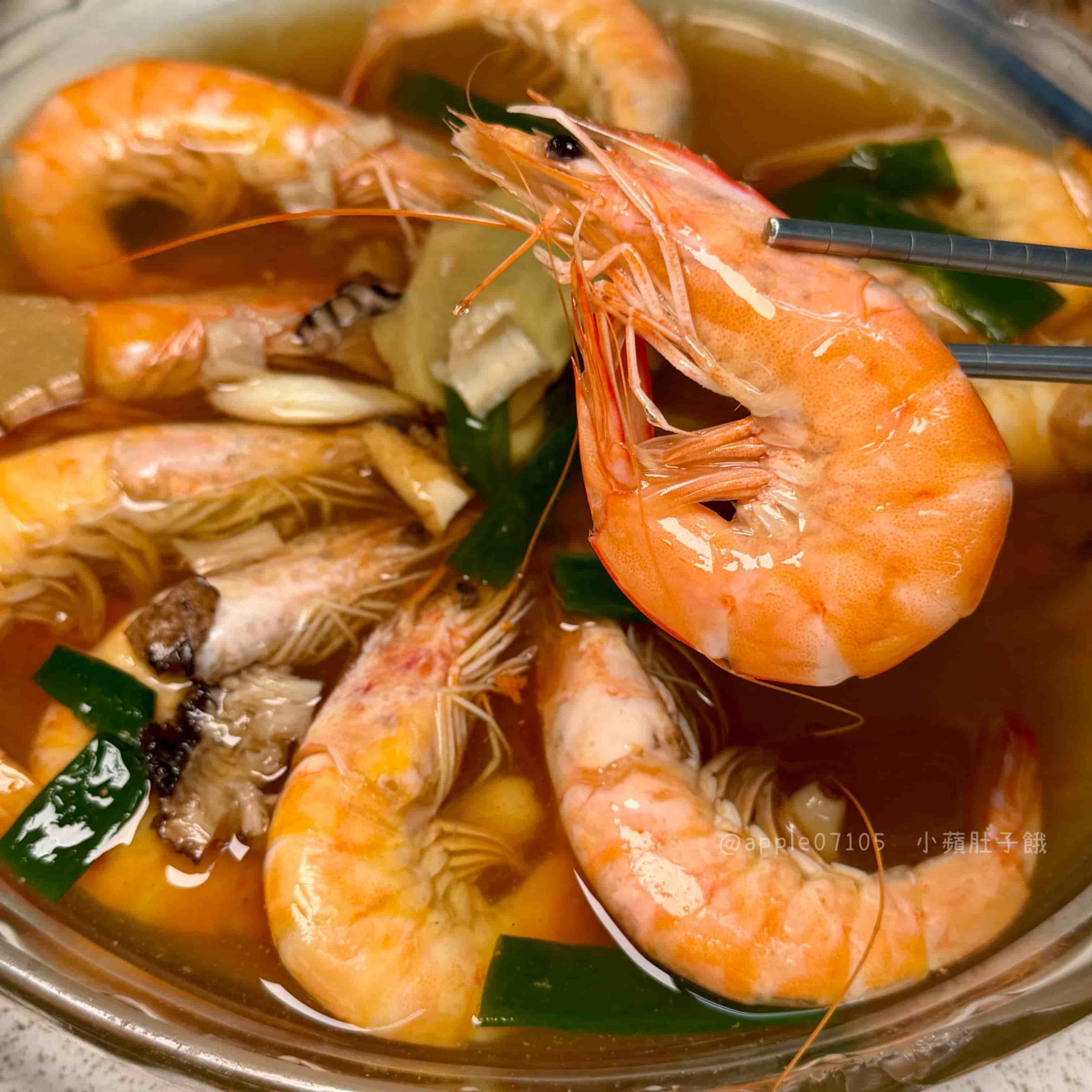酒香醉蝦一上桌就有濃郁酒香~蝦子口感Q彈紮實、肉質甜,新鮮度吃得出來,吸附醬汁後,每一口都帶著濃濃的酒香還有當歸香氣