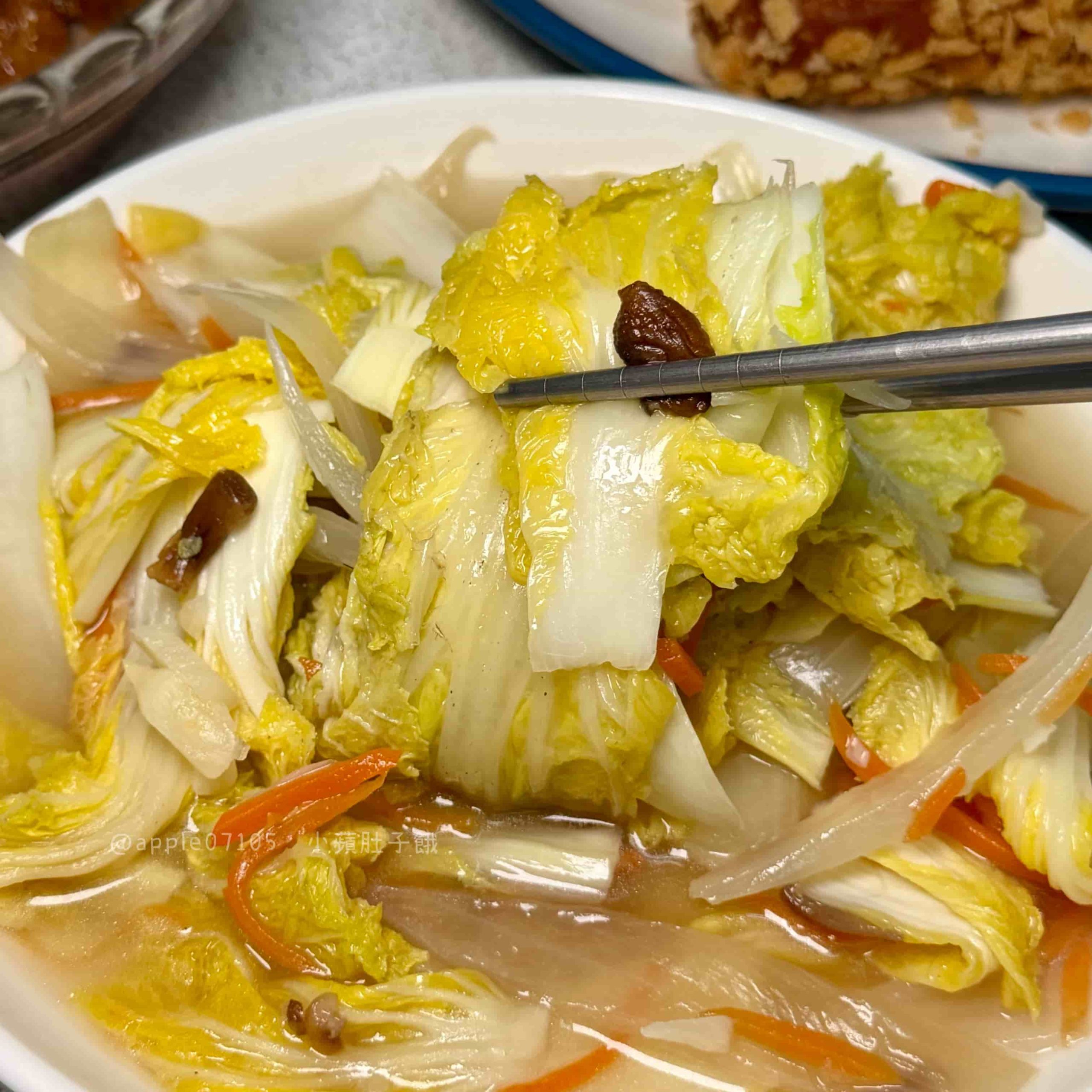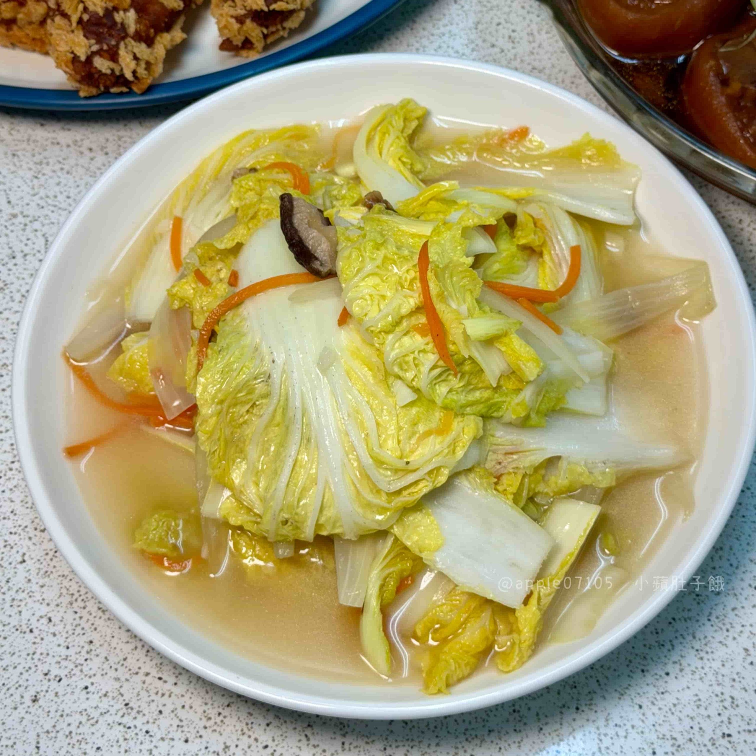 香菇娃娃菜,口感脆中帶點嫩,湯汁帶自然甜味,加上香菇與蒜香味道溫和清甜