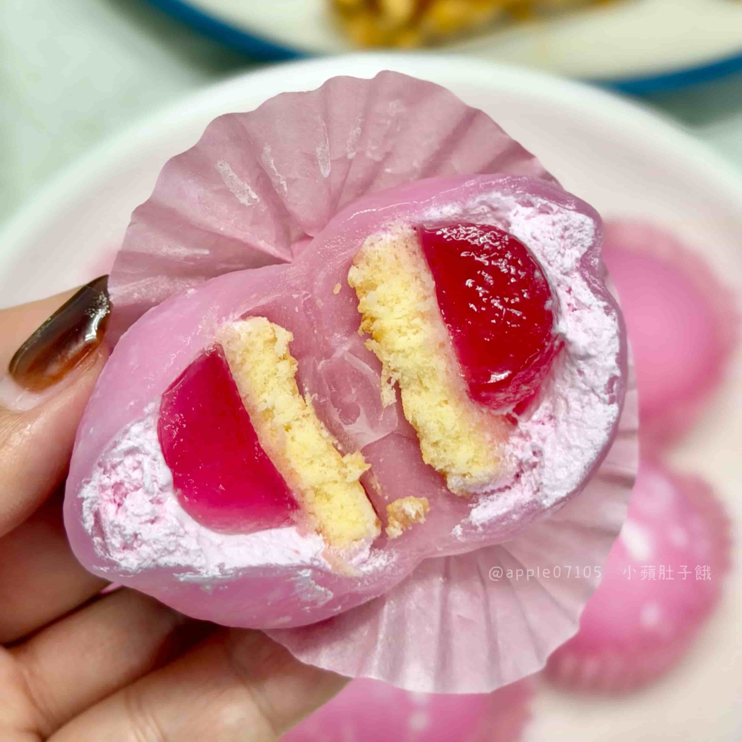 最後還有甜點做收尾~是軟Q的麻糬,裡面包海綿蛋糕+草莓果凍還有鮮奶油,整體層次口感很鮮明特別,軟Q、脆Q都有,果凍跟鮮奶油讓整體有水份感不會太乾