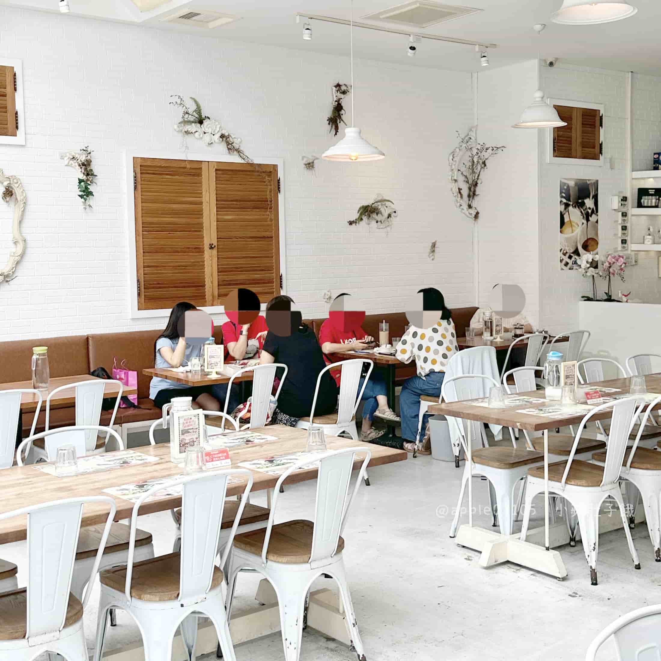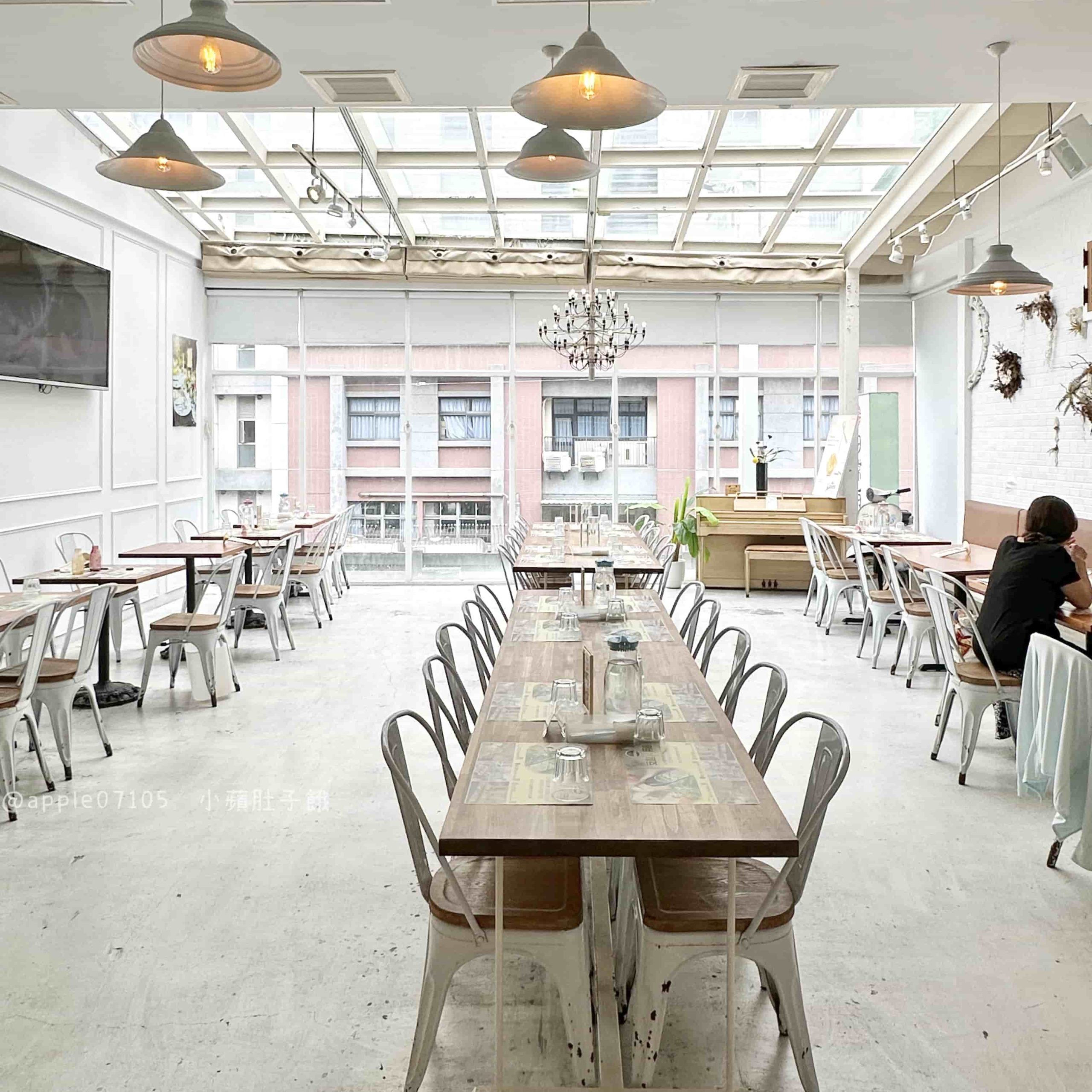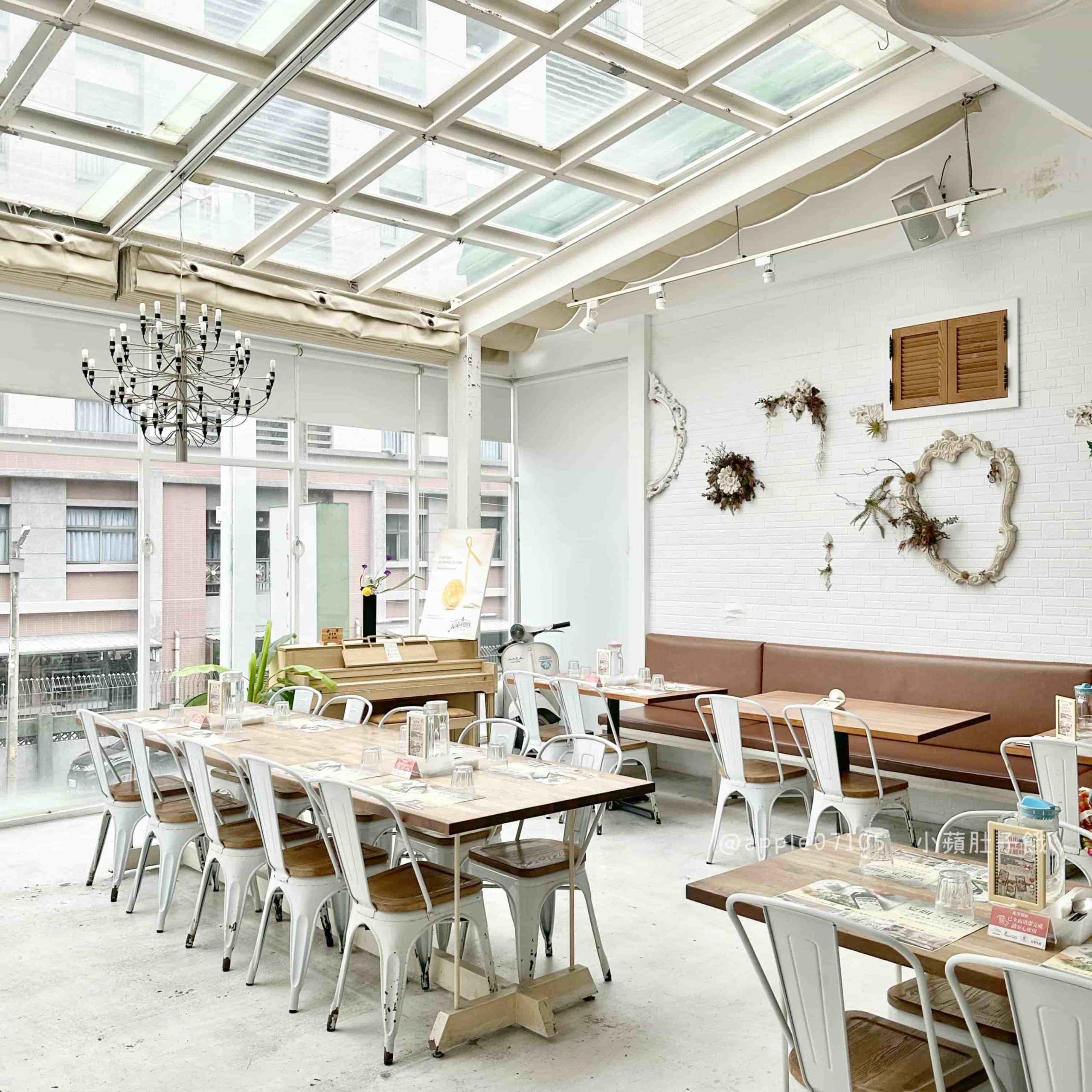 二樓是整個挑高玻璃天花版的設計,白天自然光灑進來超通透~有種歐風溫室的感覺😂白牆搭配吊燈還有乾燥花等裝飾品拍照起來也都很好看!