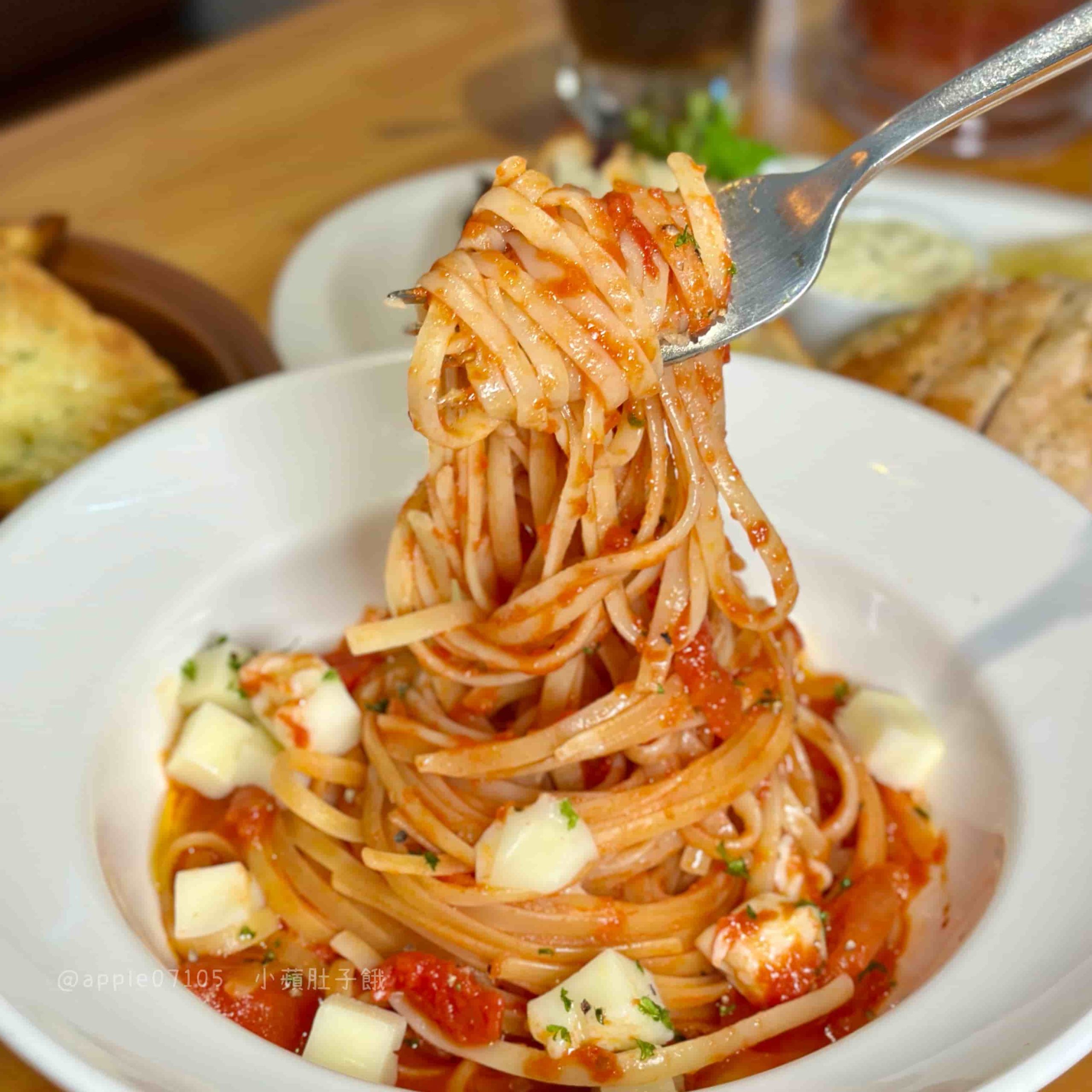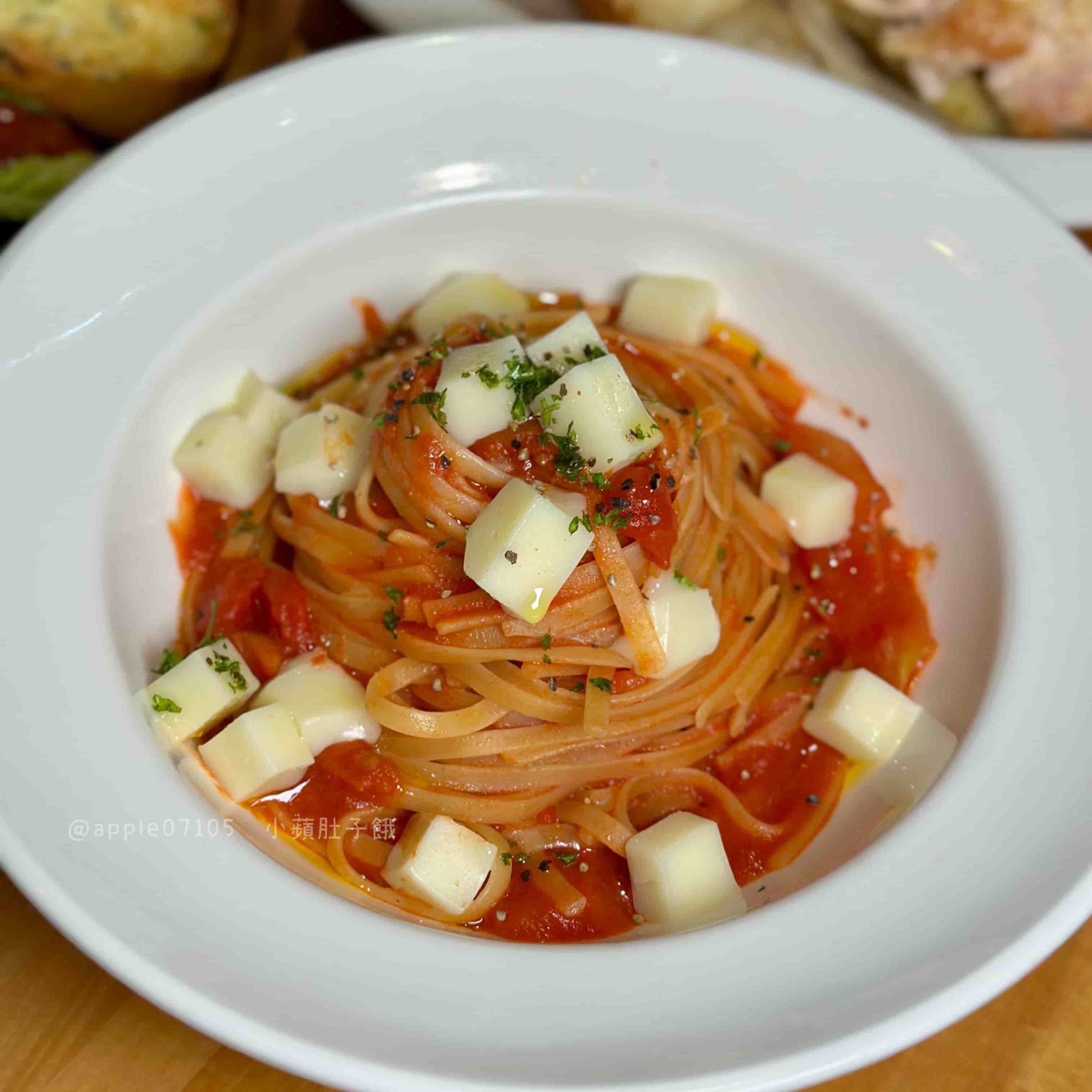 這道很像是瑪格麗特披薩變成義大利麵~吃起來番茄香氣有夠,帶點自然酸甜感,醬汁收得剛好,巴在麵條上不會太濕也不會太乾,搭配一顆顆的莫札瑞拉起司,隨著熱氣慢慢融化,和麵一起攪拌後會牽出微微的起司絲,口感軟又有牽絲感,番茄的酸甜與起司的奶香融合在一起,再帶點胡椒的辛香提味,整體清爽有層次很耐吃