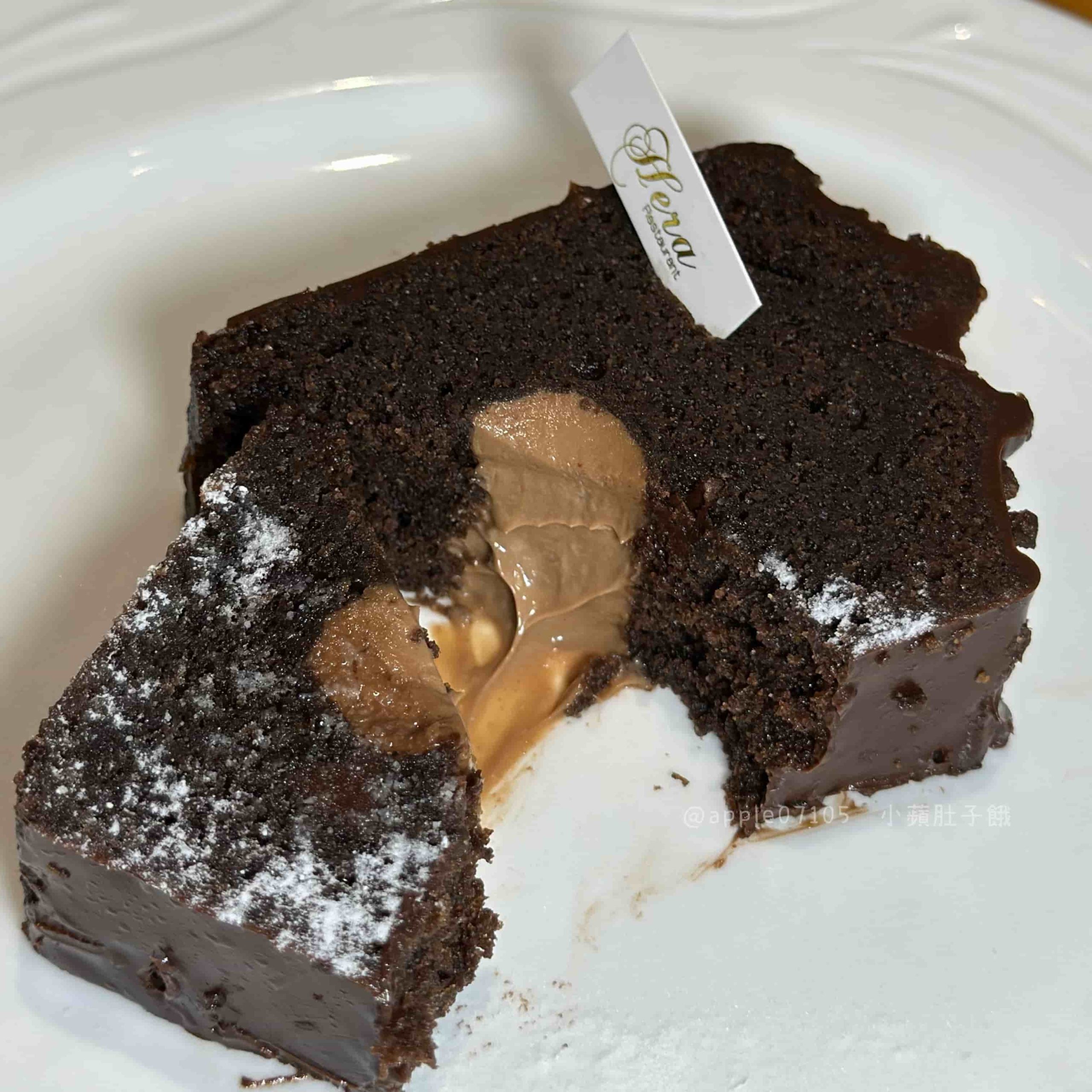 蛋糕體本身扎實微帶濕潤,吃進去就有濃厚的巧克力香氣,中間的流心巧克力滑順、邊緣的巧克力更濃厚帶點顆粒感,有點介於布郎尼跟磅蛋糕之間的那種感覺~整體甜度比較高,但喜歡甜甜巧克力的朋友一定會愛上,也讓我印象深刻,下次來還想點磅蛋糕