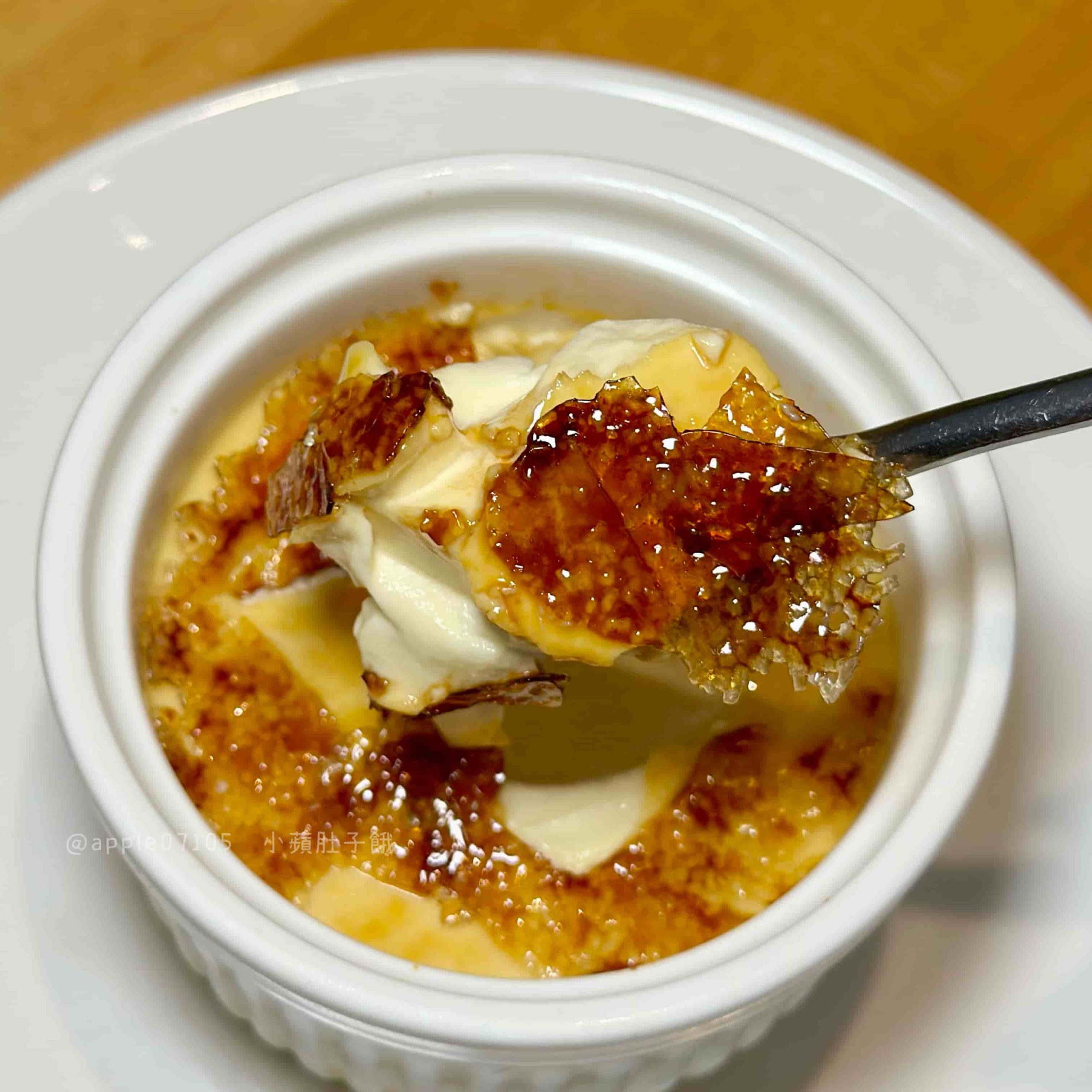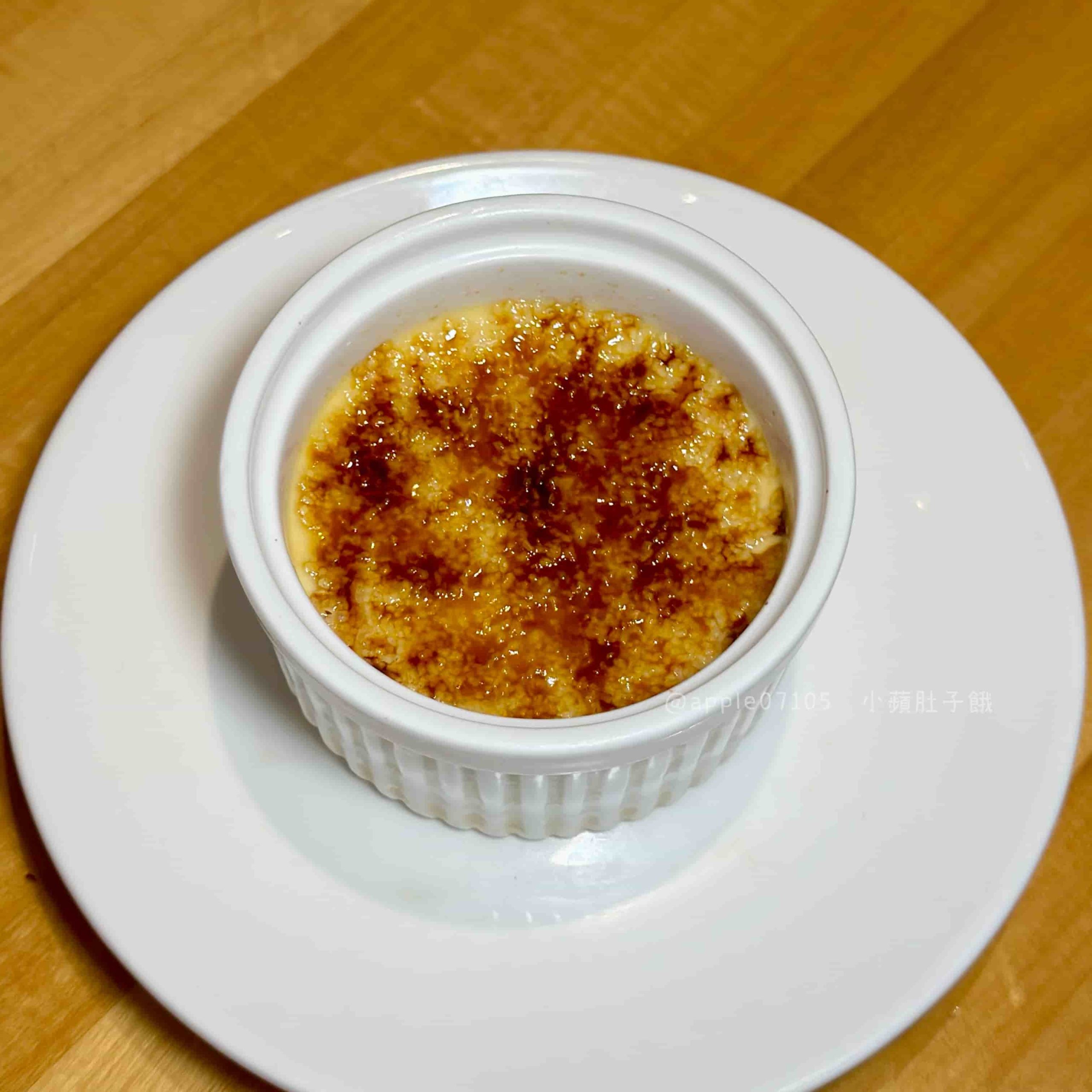 法式脆皮焦糖烤布蕾,是他們家經典必吃的甜點~上層那層糖脆,敲下去有清脆聲音,吃起來甜甜的微帶點焦苦香,搭配底下濃郁蛋香、香草香氣的布蕾,口感軟綿,甜度剛好