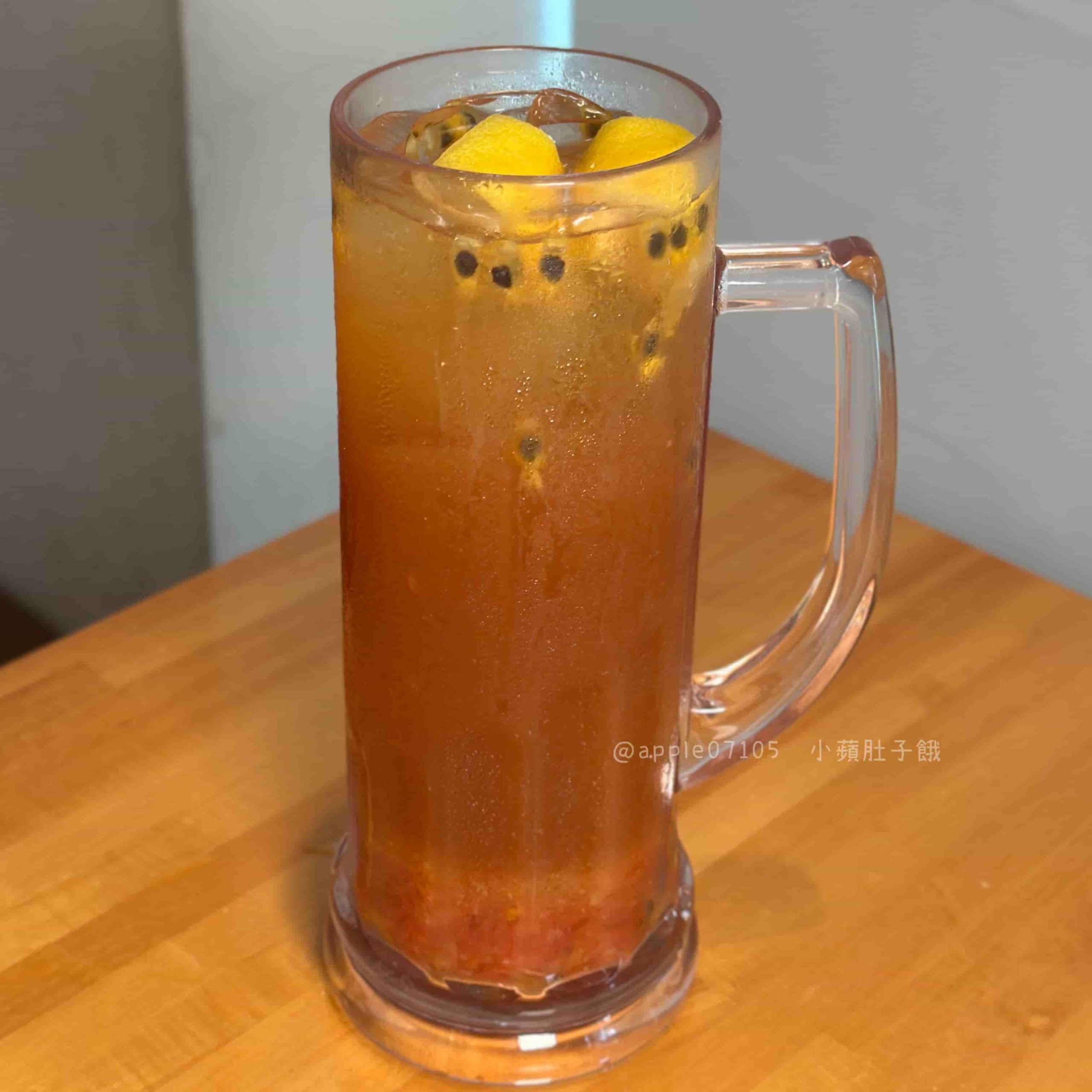 季節鮮果冰茶,喝起來葡萄柚味道最明顯濃郁~帶點百香果香,茶香在尾韻慢慢散開,葡萄柚果肉很多,吃到的時候會有點小爆汁的感覺,整體酸甜比例剛剛好,而且不苦不澀,喝起來超解膩又清爽很推